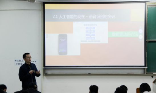 彭涛副教授介绍了人工智能的当代发展和多样化的运用场景,详细解析了该领域中的中美政策布局,指出AI全球领导者之争已经拉开帷幕,中国在论文、专利、产业、投资、技术等诸多领域都在赶超强国。对于人工智能的未来发展,他从基础平台支撑、5G畅想、脑机接口、万物互联的超级人工智能等方面作了展望。最后,他希望同学们正确看待人工智能给人类社会发展带来的风险与挑战,用好人工智能助力中国梦的实现。