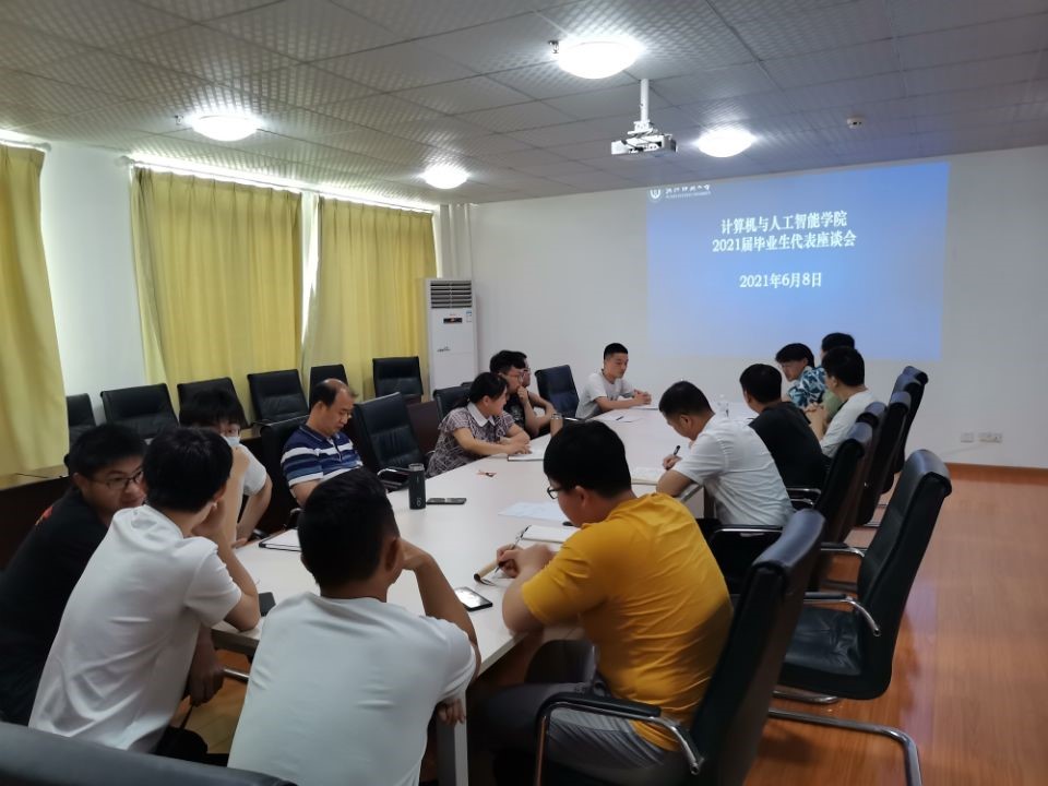 6月8日上午,ok138cn太阳集团5292021届毕业生代表座谈会在崇真楼(南楼)A4031会议室召开,本科生、研究生毕业生代表10余人参加座谈会。学院院长胡新荣、党委副书记(主持工作)胡红辉、副院长何儒汉、党委副书记涂耀威以及本科生毕业生辅导员孙榜骏出席会议。