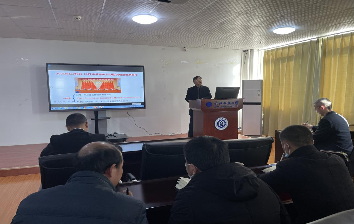 杜新年主任以《学习贯彻十九届六中全会精神,奋进“美好纺大”建设新时代》为题,围绕着全会召开的历史背景、主要内容,《决议》的主要内容、意义和结构以及如何将全会精神扎实落实到美好纺大建设进程等几个方面进行了宣讲。杜新年主任强调要深入认识《决议》的重大意义和深远影响,决议是里程碑、教科书、宣言书、集结号,是美好纺大建设的指南针,领航员;要准确把握全会精神实质,理清思路、把握重点、强化措施、把握方法,在学懂,弄通,做实上下功夫,真正将全会精神落实于纺大的每点进步里;要始终坚持党的领导,学党史、强信念、跟党走,把牢政治方向,坚定责任担当展现新作为;要学用结合,学习好、宣传好、运用好全会精神,以更高标准、更严要求在学习宣传贯彻十九届六中全会精神上下更大的功夫。