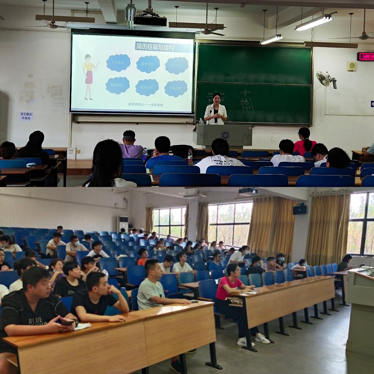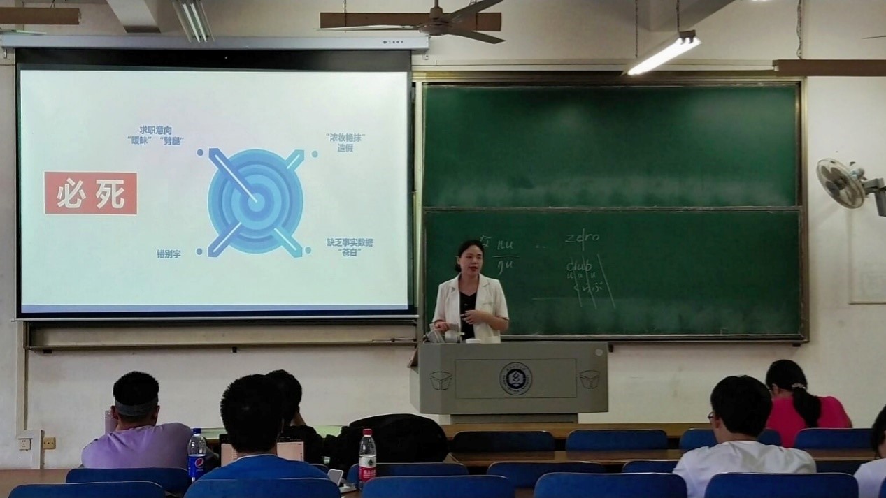 讲座上,讲师郭莎从简历的框架、写简历的难处、简历如何写三个方面出发,为学生们耐心、细致地讲解简历制作的大致内容与流程。同时带领学生们一起分析具体案例,从企业面试官的角度剖析求职者简历中出现的问题,共同总结出简历制作中的注意事项。针对个人简历制作中的“雷区”,她特别强调,个人简历中切不可出现错别字、数据信息一定要真实可靠不可造假,并且要向面试官传递出坚定明确的求职意向。
