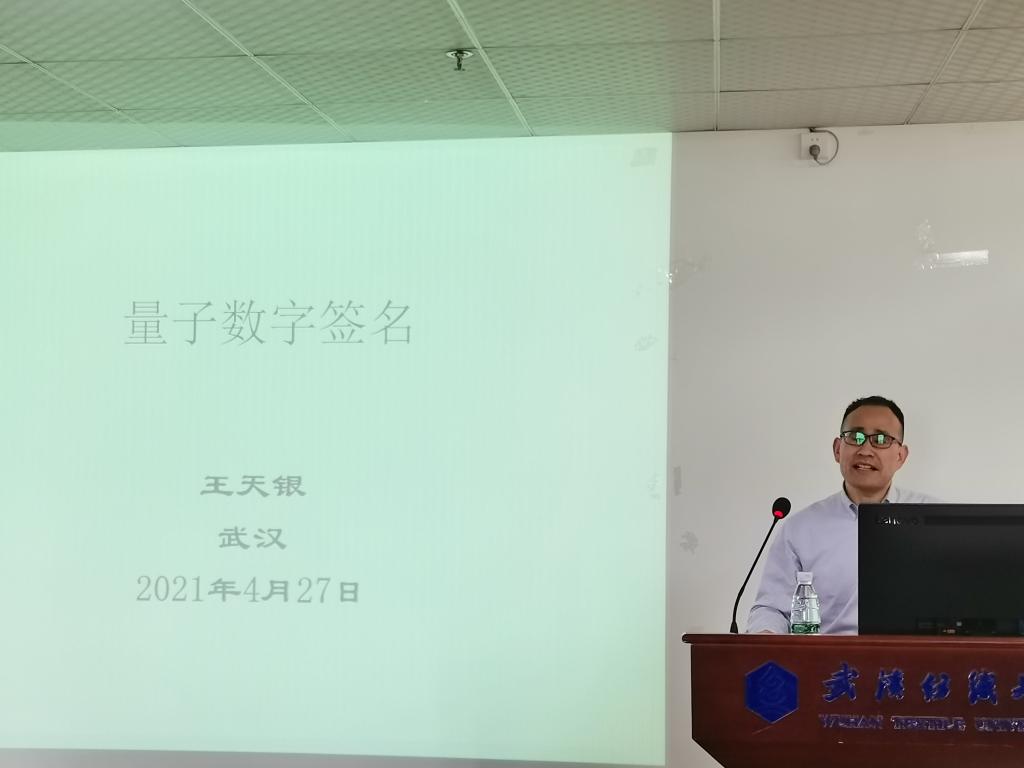 应ok138cn太阳集团529邀请,4月27日下午,河南省科技创新杰出青年,河南省高校科技创新人才,洛阳师范学院王天银教授做客我校阳光论坛,此次王天银教授为我院师生做了一场主题为“量子数字签名”的学术报告,报告由ok138cn太阳集团529副院长何儒汉教授主持。