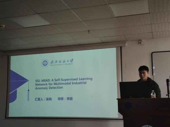 吴枫同学分享的主题为 “SSL-MlAD: A Self-Supervised Learning Network for Multimodal Industrial Anomaly Detection”,主要探讨工业异常检测问题。当前,基于 RGB 图像和 3D 点云的多模态异常检测方法存在预训练模型依赖、庞大内存记忆库导致资源消耗和推理时间增加等问题。他提出一种自监督学习的多模态重建框架,该框架包含分层的 2D - 3D 嵌入模块、联合编码器和带有模态共享与特定组件的解码器,用于 RGB 图像和 3D 点云的重建与特征提取。实验表明,他们的方法在 MVTec3D - AD 和 Eyescandies 数据集上优于以往最先进方法,并且能够显著降低计算资源消耗,提升实时性能。