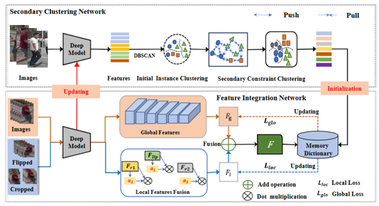 无监督人重新识别(ReID)旨在通过更新样本聚类字典来训练模型,以从不同的相机视图中检索感兴趣的人。由于数据处理成本低,该领域最近引起了广泛关注。现有的方法主要集中在利用单一的固定优化方法(网络)对所有特征进行聚类,忽略了它们的多样性和完整性,从而导致了噪声伪标签。本研究提出了一种DSFNet框架,即用于无监督人ReID任务的二次聚类和特征集成的双融合网络(DSFNet)框架。所提出的框架由三个主要部分组成:(1)硬样本二次聚类网络(SCNet),(2)特征集成网络(FINet),以及(3)双融合动态优化(DDO)方案。分别从原始特征聚类,局部和全局特征提取以及双合动态优化机制三个方面完成模型的训练,有效提升了无监督行人重识别的精度。