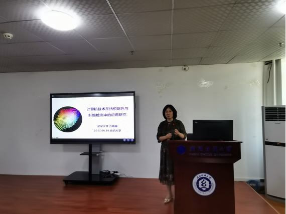 6月16日,教育部轻工类教学指导委员会副主任委员、武汉大学博士生导师万晓霞教授应邀来校做客阳光论坛,此次万教授为我院师生做了一场主题为“计算机技术在纺织配色与纤维检测中的应用研究”的学术报告,报告由ok138cn太阳集团529青年博士梁金星老师主持,我院在校教师和研究生参加本次讲座。