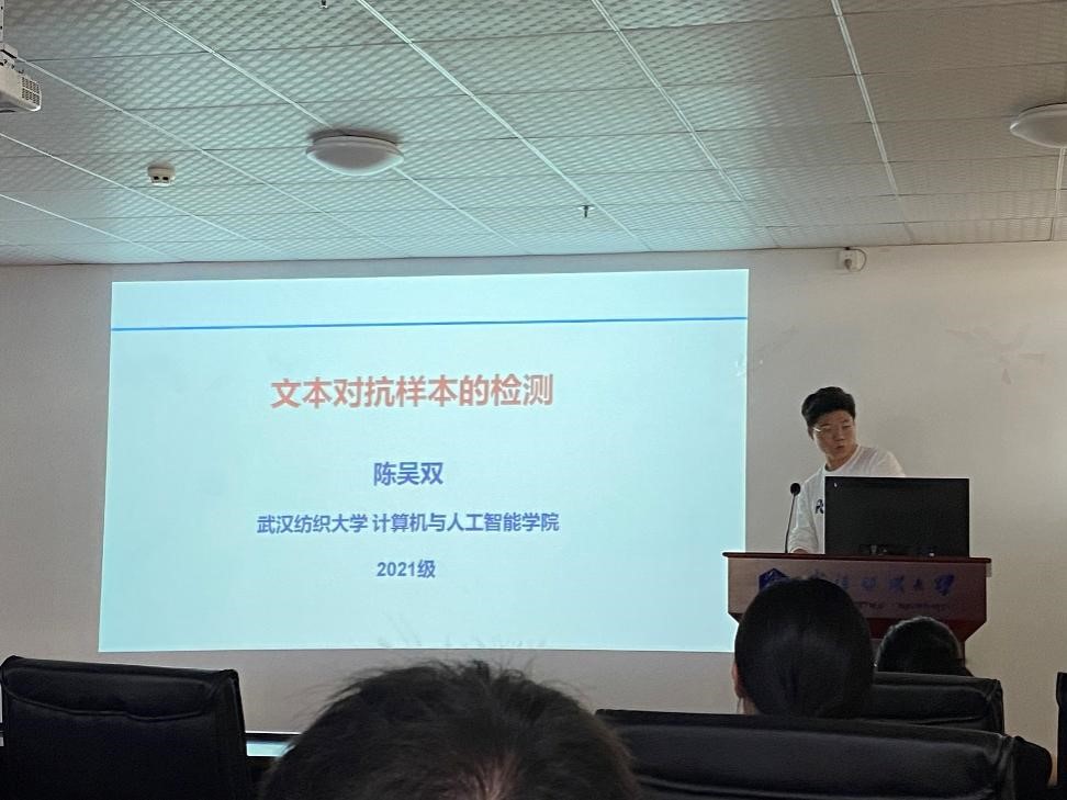 陈吴双同学分享主题是“文本对抗样本的检测”,他发现现有文本对抗样本检测方法普遍需要样本标签作为指导且计算成本较高,所以使用稀疏子空间聚类的方法,将需要使用label指导的有监督文本检测变为不需要标签的无监督检测,这样的方法现实可用性更强。同时,使用数学建模的方式所需要的计算资源远低于现有的方法。三个数据集,四种攻击方式的实验结果表明,无论是在小样本还是在全样本的环境下,他们的方法检测性能均优于现有方法。