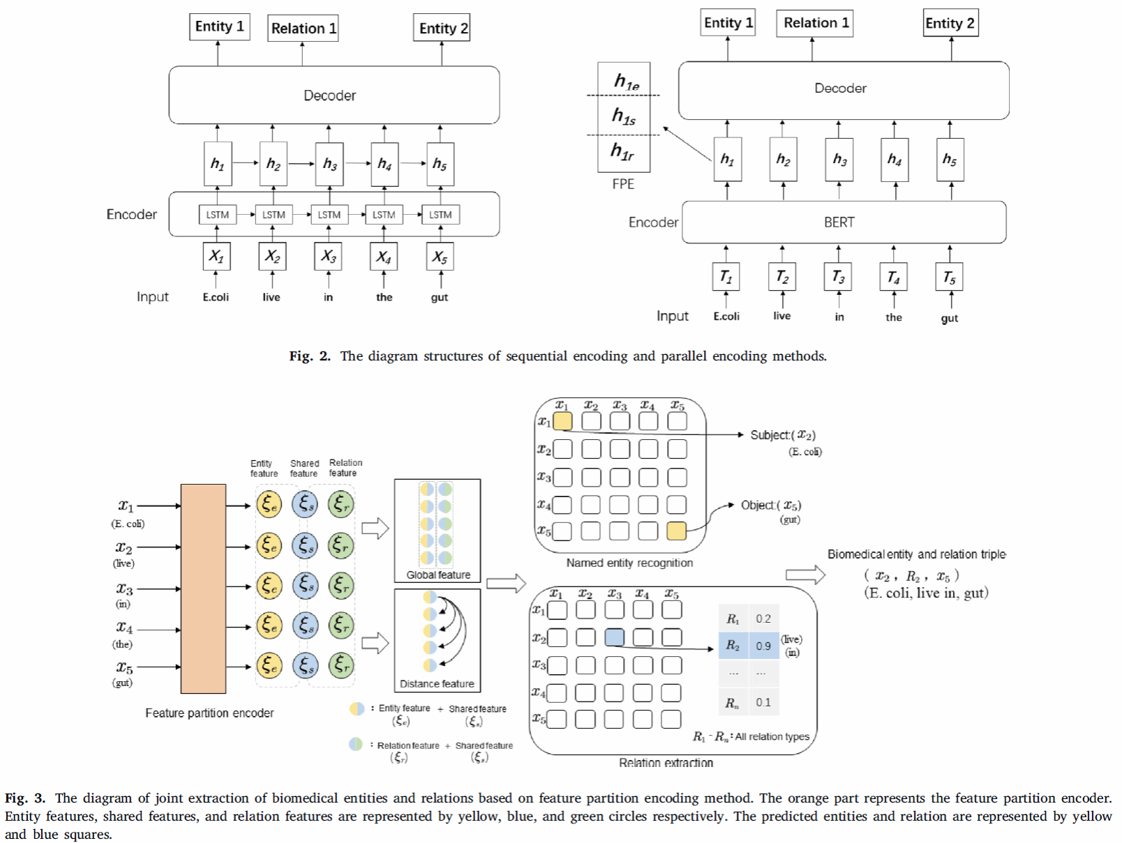工作一:Joint extraction of biomedical overlapping triples through feature partition encoding发表在期刊《Expert Systems with Applications》。该研究工作提出了一种基于特征分区的实体-关系三元组抽取模型,以解决复杂医学文本的实体重叠难题,从而为信息抽取和构建高质量知识图谱提供了一种可行的解决方案。