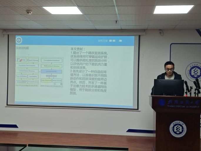方晨安同学分享的主题为“Quali-knee: Evaluating the Quality of Execution in Jump Exercises with a Wearable Sports Kneelet”。虽然运动活动识别在移动、可穿戴和泛在计算领域得到了广泛探索,但现有研究主要集中在识别和统计特定运动类型上。相反,质量评估是一个更具挑战性的问题,已发表的研究成果明显较少。在该课题研究中,他们介绍了Quali-knee,这是一种使用可穿戴运动膝关节传感器评估运动执行质量(QoE)的方法,该传感器可测量跳跃运动时下肢膝关节的屈曲角度。具体来说,Quali-knee利用放置在大腿外侧的单个惯性测量单元(IMU)来测量用户膝盖的加速度和角速度信号。为了测量下肢膝关节屈曲角度,Quali-knee采用了一种新颖的跳跃活动分割方法,通过IMU传感器确定跳跃活动的边界。为了提高Quali-knee的性能,他们利用多通道传感器模式和特定活动之间的潜在关系来学习丰富的活动表示。他们的贡献在练习识别方面取得了良好的性能,对每次练习的膝关节屈曲角度进行了预测。实验结果表明,该系统在跳跃分类方面的平均F分数为0.92,在角度预测方面的平均绝对误差为2.41°。