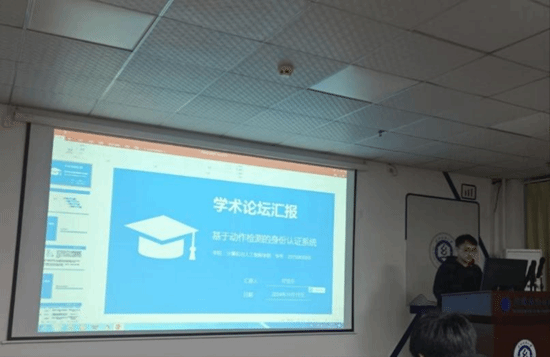 时佳乐同学分享的主题为“基于动作检测的身份认证系统研究”。 针对惯性测量单元传感信号分类模型因可穿戴设备获取数据时易缺少,面临着鲁棒性差等重要表征问题,提出一种利用伸手抓握门把手动作进行身份认证的系统。首先,通过MLA从日常动作中提取一致性特征信息和利用互补滤波器获取到开门动作中多样性特征信息。其次,利用神经网络从获取到的日常动作信息中识别出开门动作。最后,在具有三层增强模块的模型中进行身份认证。结果表明,在动作识别任务上准确率达到98.4%,在身份认证任务上取得97.5%的准确率。并利用DTW算法在时间跨度上进行比较以及进行对比实验,证明了该系统的现实可行性。