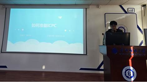 费文伟同学随后分享了他准备ICPC比赛的心得体会,详细讲述了他在备赛期间如何制定计划、进行团队合作以及如何应对比赛中的各种挑战。他的分享不仅为同学们提供了具体的备赛策略,还鼓励大家积极参与各类学科竞赛,提升自身的专业能力。