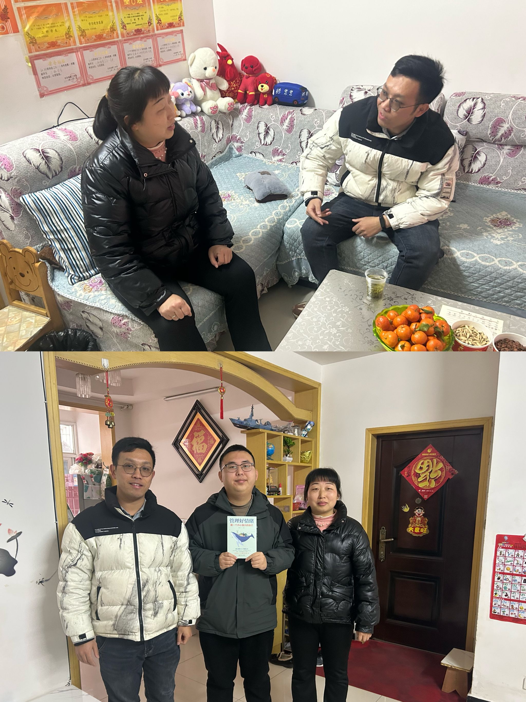 2024级辅导员李港前往黄冈红安江同学家中,首先感谢了家长们对学院学生工作的支持与帮助,并给学生送上精心准备的书籍,向家长反馈学生在校的思想状况和学习情况。在沟通中,李港与家长交流了如何促进学生提升专业学习能力、快速融入大学生活的方法,并针对学生的大学学习生涯规划提供了自己的建议。
