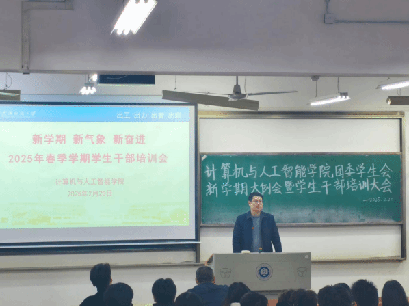 2月20日下午四点,ok138cn太阳集团529院团委学生会于03-120教室召开2025年春季学期新学期大例会暨学生干部培训会,旨在为新学期学生会各个部门进行规划和指导。学院党委书记晏伟、院党委副书记向涛、学院全体辅导员、2024级全体学生干部及院团委全体学生骨干参会,会议由院团委指导老师易凡主持,