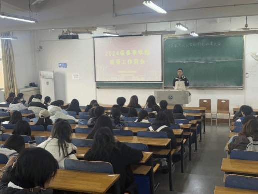 会上,李港对上学期各班的学业情况和班风建设进行总结,感谢班委们在过去一学期对班级建设做出的贡献,希望各位班委在新学期继续为班级建设做出贡献。随后,着重强调班级纪律,要求班长和其他班委严格执行课堂、早晚自习的出勤检查,定期向学院老师反馈。他指出,良好的学习秩序是提升学业质量的基础,各班委需通力协作,确保每位同学按时参与学习活动。同时,李港明确班级事务分工,鼓励其他班委积极配合,共同为班级发展出谋划策,提升班级凝聚力与向心力,关心帮助班上每一位同学。汤若釴老师则针对近期综合测评工作进行详细解答、指导,要求各班级干部秉持公平、公正、公开原则,协助学院完成学生综合素质测评,确保测评结果真实反映学生在校表现,为评优评先、奖学金评定提供有力依据。