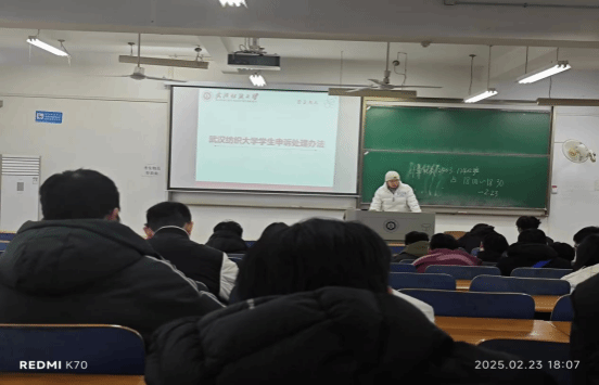 随后,由班长详细解读《ok138cn太阳集团本科生考勤及请假管理办法》《ok138cn太阳集团学生违纪处分办法》等重要条例,针对旷课、考试违纪、学术不端、违反宿舍管理等违纪行为的处分规定进行重点说明,使学生深刻认识到违纪行为的严重后果,进一步提升了学生对自身品德修养和行为规范的重视程度。为保障学生权益,班会还介绍了《ok138cn太阳集团学生申诉处理办法》,明确告知学生在对学校处理或处分决定存在异议时,可通过合理合法途径维护自身权益。