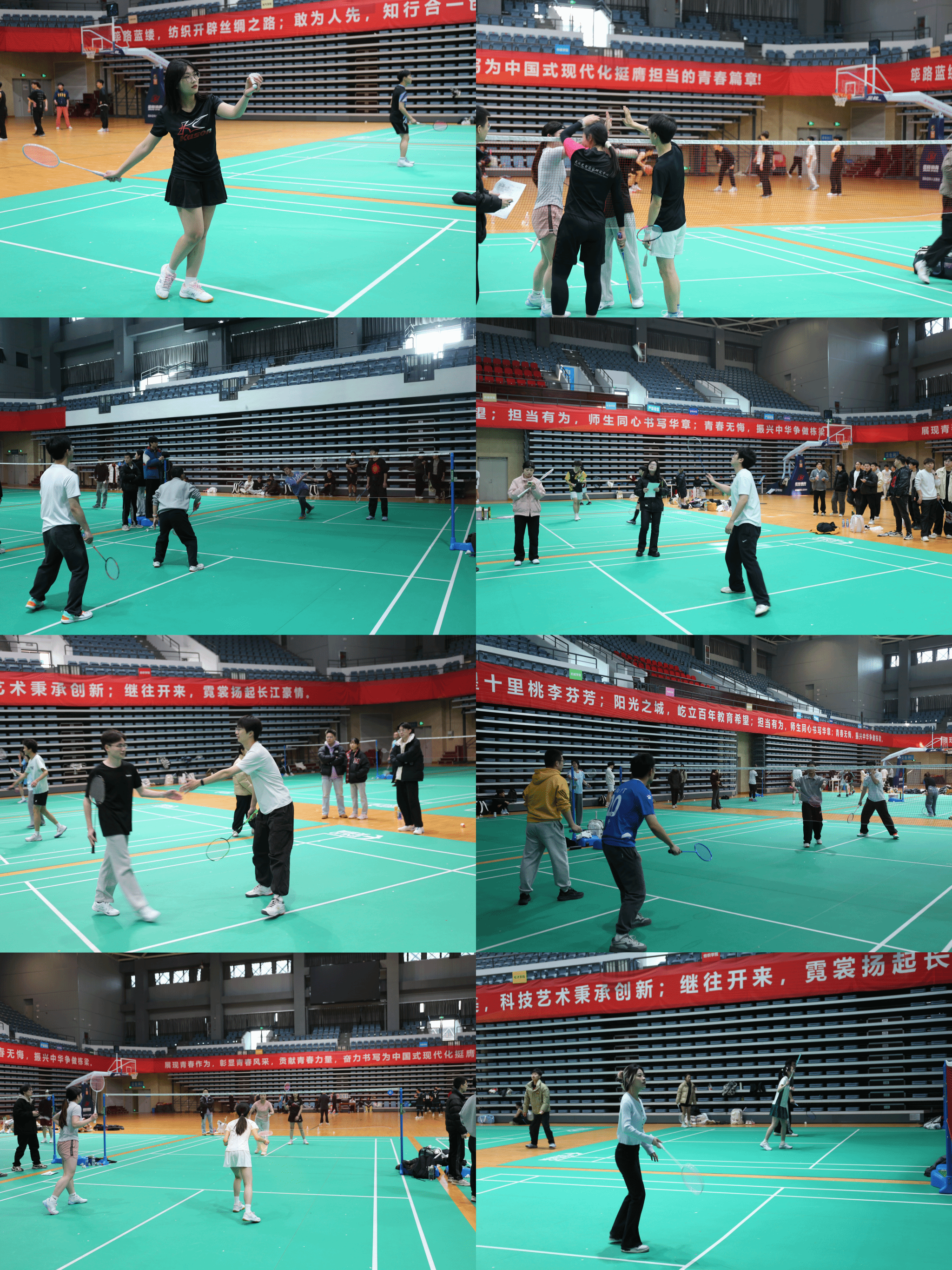 赛场上,选手们在男单、女单、男双、女双以及师生男女混合双打五个项目中挥洒汗水、奋力拼搏,用速度和力量展现了计智学子的风采。在紧张激烈的比赛中,选手们全力以赴,展现了高度的竞技水平和团队合作精神。选手们在场上配合默契、攻守兼备,比赛场面精彩纷呈,观众们也为选手们的拼搏精神和精彩表现纷纷鼓掌。