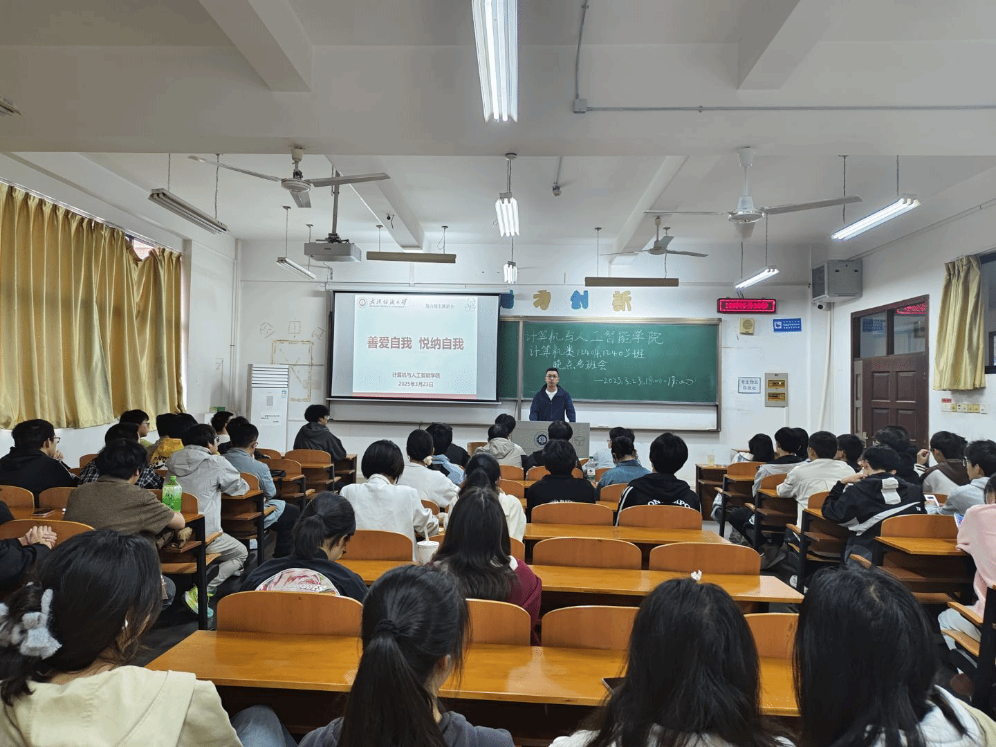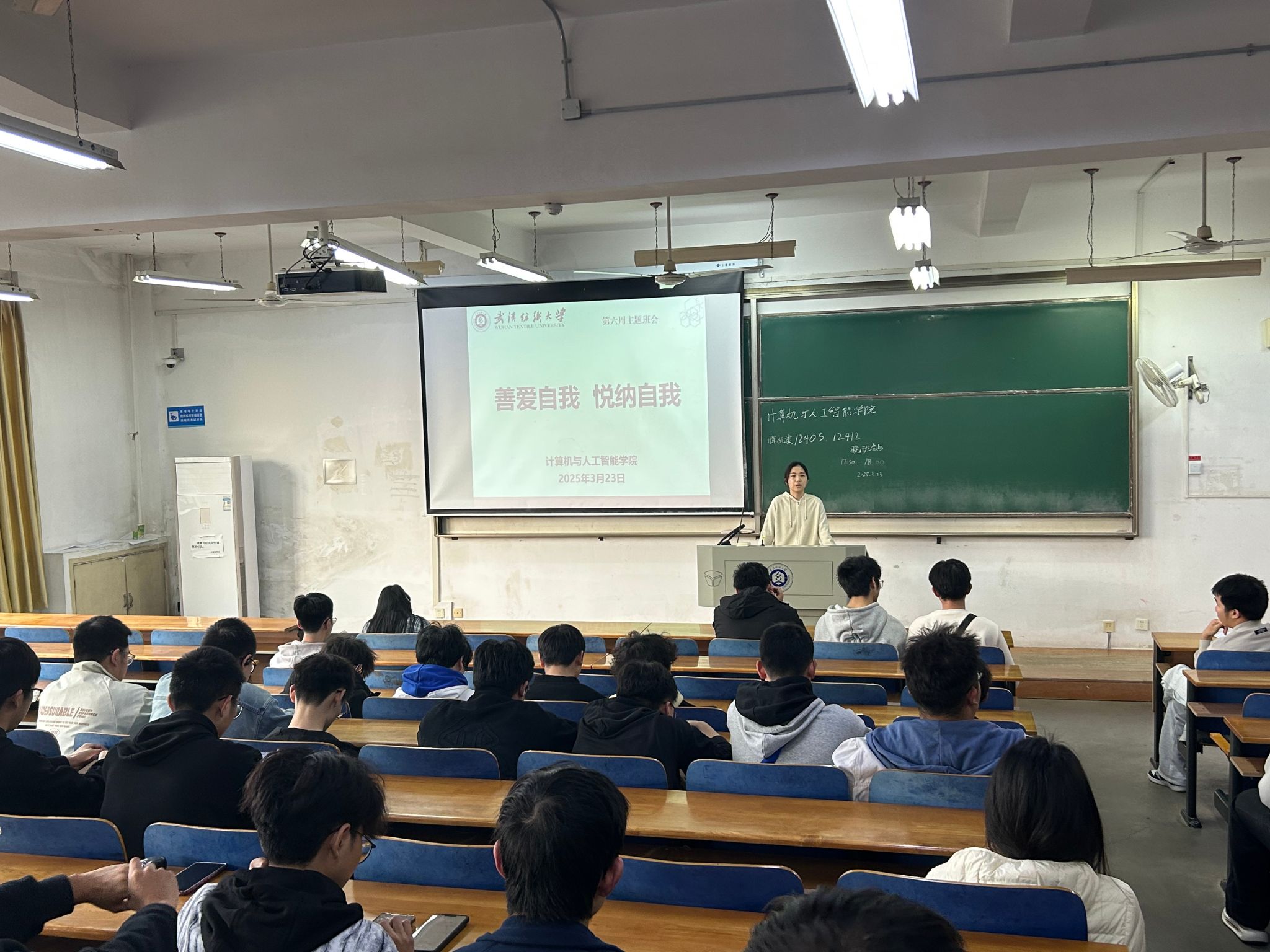 本次主题班会中,班主任、辅导员与班委们相互配合,不仅帮助同学们学会如何接受自己、悦纳自己,也进一步提升了学生的防诈骗意识和消防安全的意识。