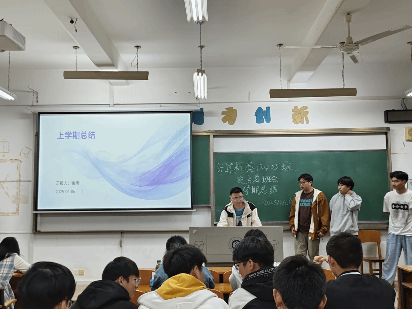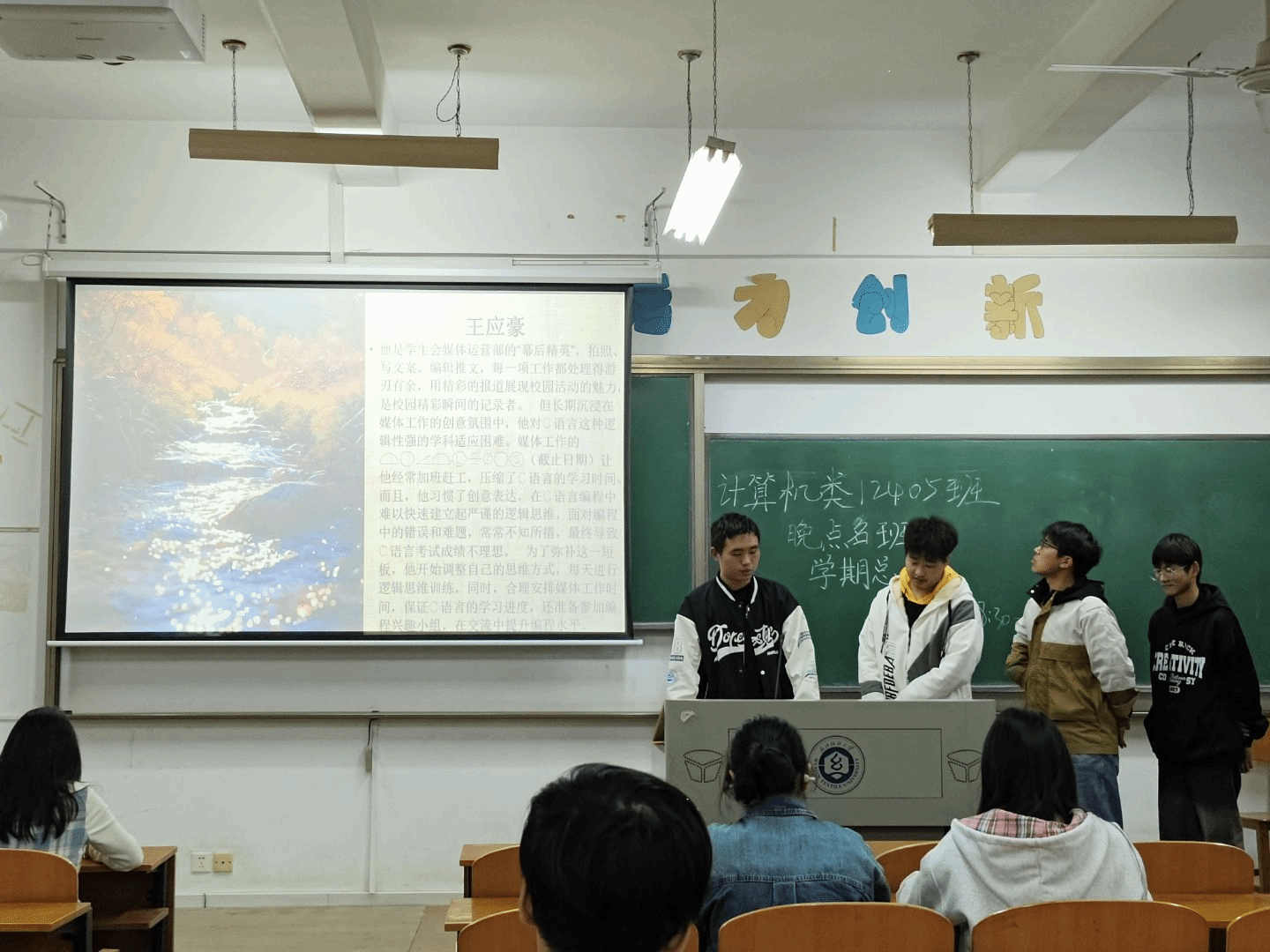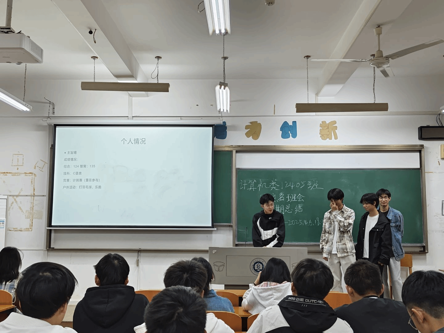 向涛最后进行总结发言,他对本次班会给予了充分肯定,表示这次学期小结班意义重大。通过以宿舍为单位的汇报,大家清晰地看到了彼此的优势与不足。希望同学凝聚力量,寝室同学间互帮互助,在学业上勇攀高峰,在校园生活中收获成长与快乐。不仅要在专业学习上取得优异成绩,还要积极参与各类学科竞赛、实践活动,提升自身综合素养,成为计算机与人工智能领域的优秀人才。