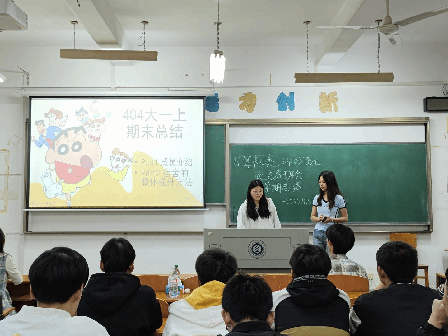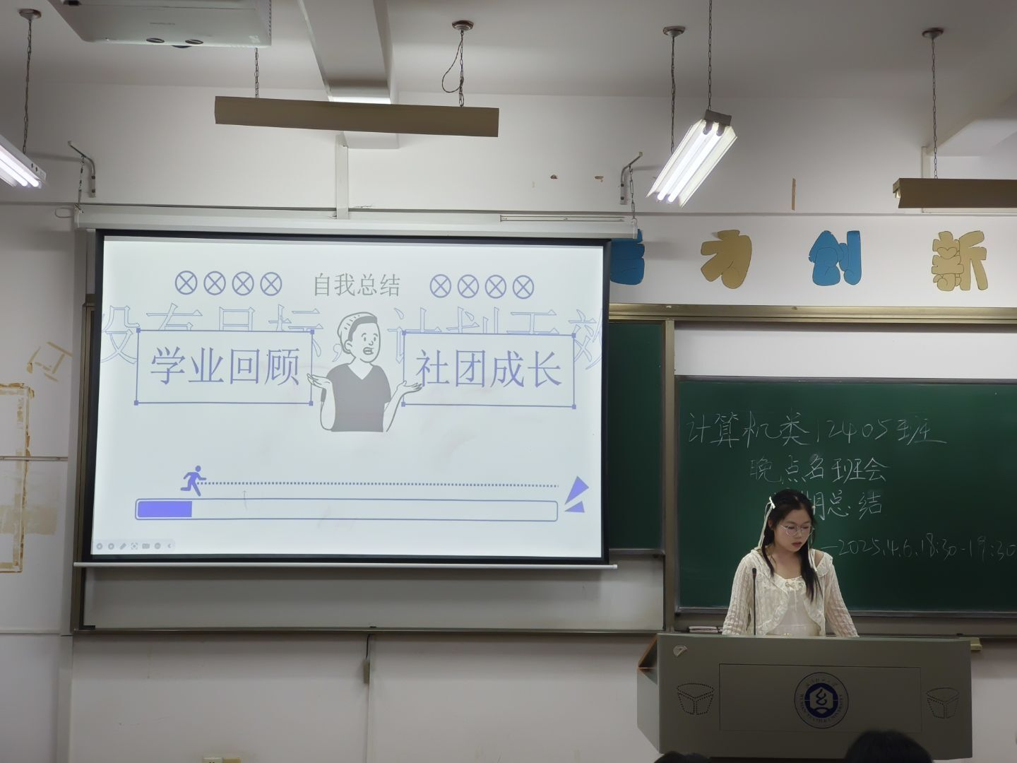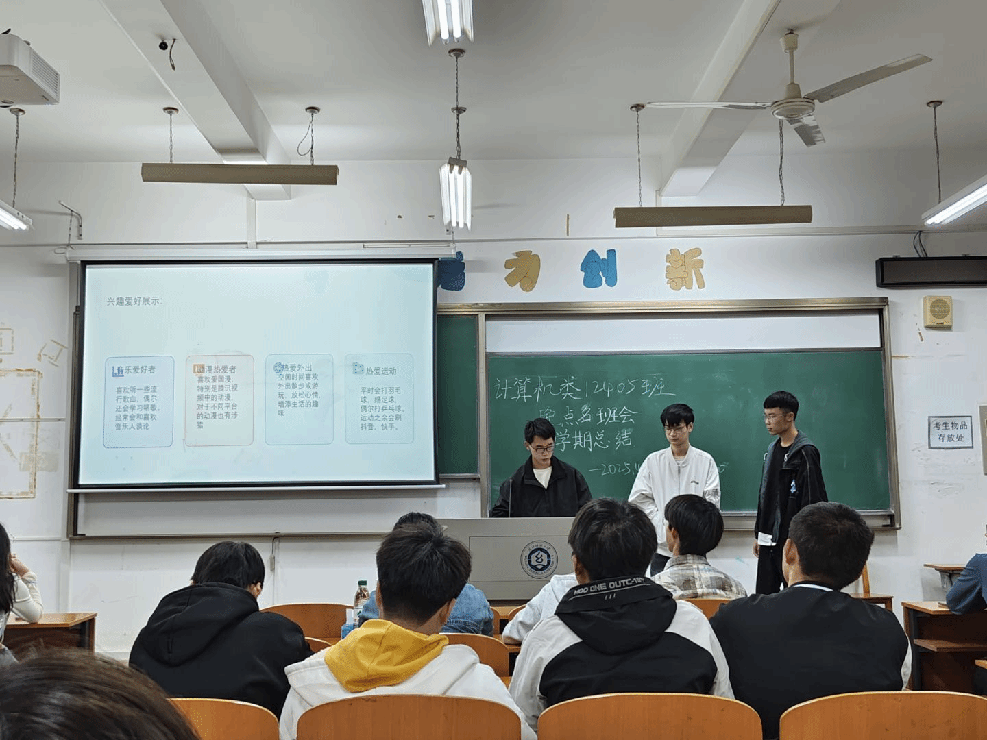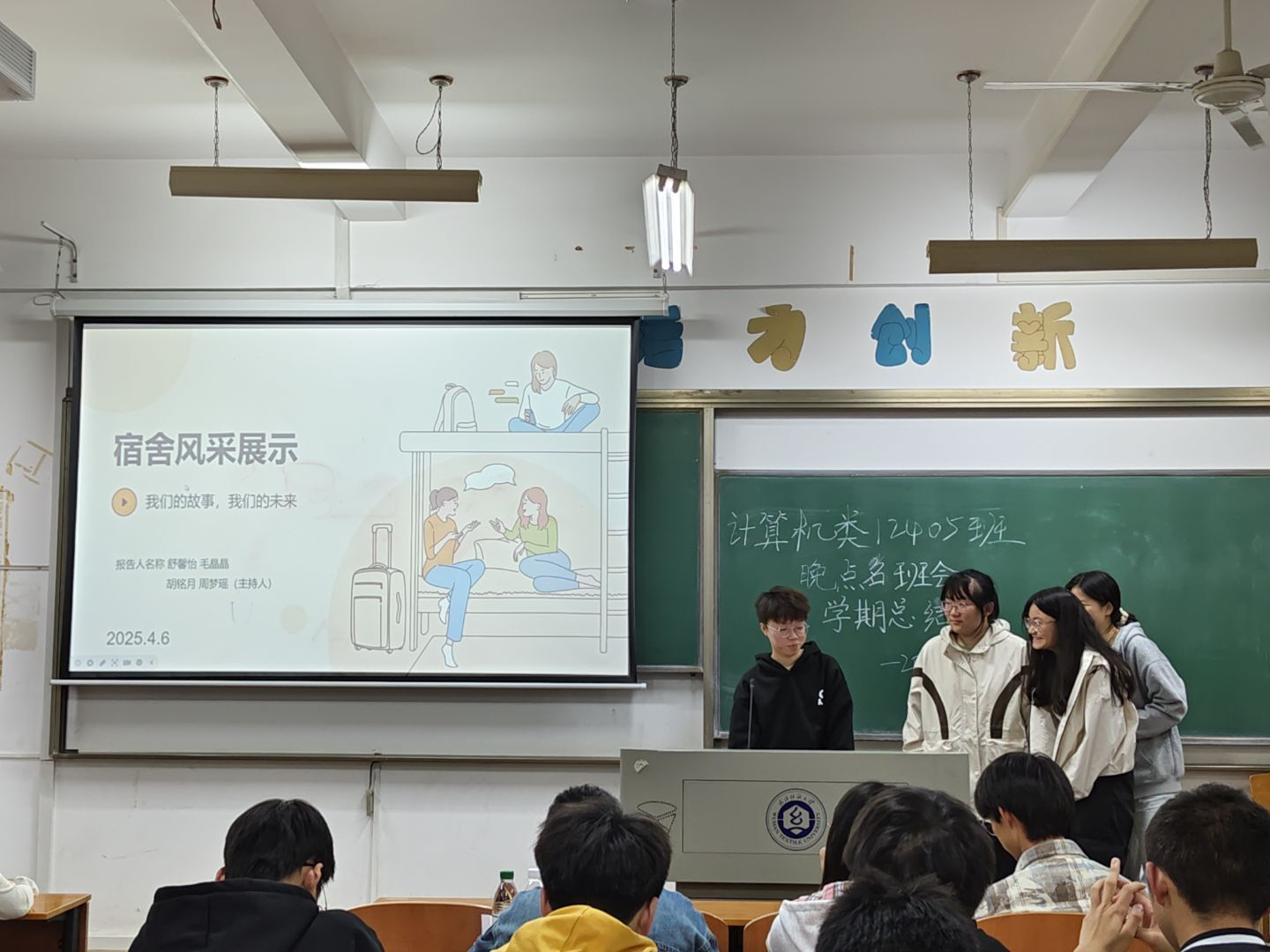 向涛最后进行总结发言,他对本次班会给予了充分肯定,表示这次学期小结班意义重大。通过以宿舍为单位的汇报,大家清晰地看到了彼此的优势与不足。希望同学凝聚力量,寝室同学间互帮互助,在学业上勇攀高峰,在校园生活中收获成长与快乐。不仅要在专业学习上取得优异成绩,还要积极参与各类学科竞赛、实践活动,提升自身综合素养,成为计算机与人工智能领域的优秀人才。