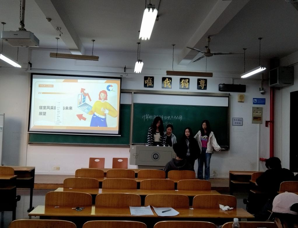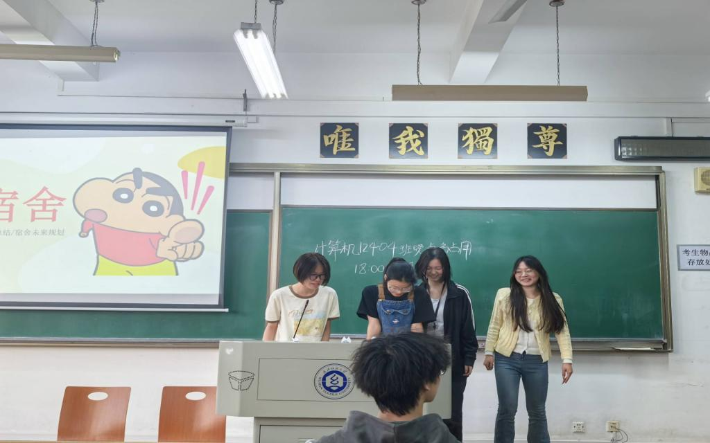 为营造良好寝室氛围、促进班级寝室间的交流学习,4月13日下午,计算机类12404班在03-308教室开展对2024—2025学年秋季学期小结班会,辅导员李港和计算机类12404班全体同学共同参会,此次班会由班长卻昌辉主持,以寝室为单位依次进行总结汇报。