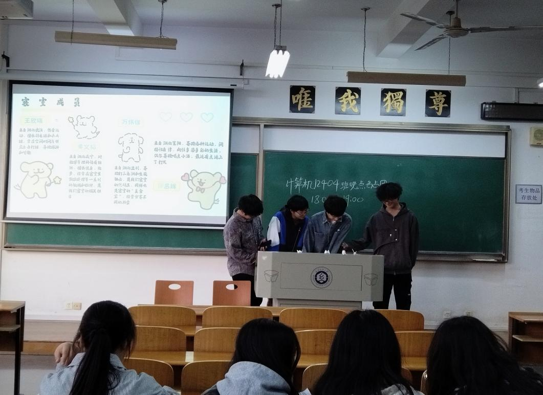 4B514 寝室长王欣瑞详细介绍了每个寝室成员:王欣瑞热爱运动,擅长羽毛球和乒乓球,并多次参加学校的比赛取得优异的成绩,虽然C语言挂科,但他决心在新的学期里和室友互相督促以提高成绩;黄文韬是宿舍里的搞笑担当,擅长健身,跑步,对数学等理科情有独钟,虽然在上学期的学习中英语挂科,但这学期决心合理分配时间,争取期末不挂科;万伟信是寝室的代码王和“美食家”,参加了蓝桥杯等竞赛,同时注重劳逸结合,闲暇期间会通过游戏来放松自我;卻昌辉喜欢各种运动,参加了大英竞赛,并积极参加太极拳等校园活动。王欣瑞表示他们寝室整体学风不浓,参加活动积极性不高,但在新学期将会整顿学风。