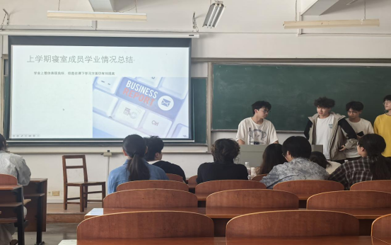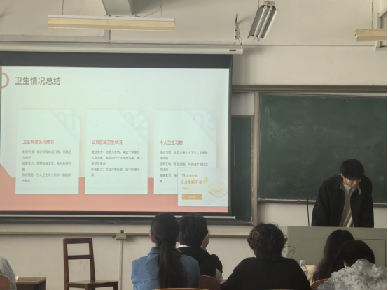 在班会的尾声中,班助张佳林进行总结发言,希望所有参与汇报的同学都能记住今天的发言,认识自身不足之处,并以此次班会为契机进行改进。