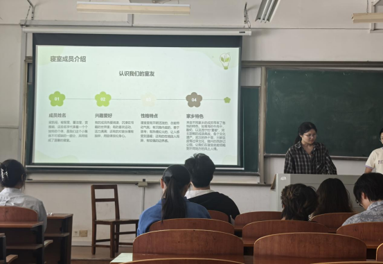 梁凯瑶同学以她独有的风采,绘声绘色地介绍了她们寝室成员的兴趣爱好、家乡风情以及性格特点。她还细致地阐述了寝室成员们共同制定的学习规划,包括了切实可行的短期目标和宏伟的长远愿景。通过她的描述,我们仿佛能够窥见寝室成员们丰富多彩的个性与和谐共处的氛围,以及她们对未来的明确规划和坚定决心。