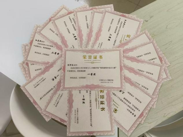 经过紧张激烈的比拼,学术科技部秉持公平公正原则完成分数统计,最终产生一等奖 4 名、二等奖 6 名、三等奖 9 名。承办方与指导老师为获奖选手颁发荣誉证书与精美奖品,充分肯定同学们在赛场上的精彩表现。获奖学子凭借扎实的专业功底脱颖而出,用实力诠释了编程魅力。希望这份荣誉与奖品,能激励同学们在未来的学业道路上继续突破,绽放更耀眼的光芒。