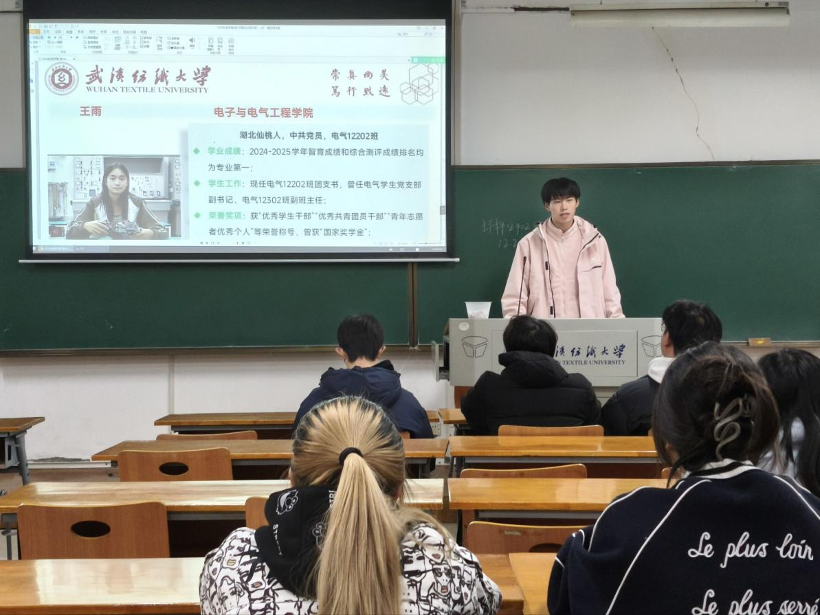 班会特别设置了“攀登奖学金获得者风采展示”环节。通过图文并茂的展示与生动讲述,多位往届获选人的先进事迹呈现在同学们面前。他们在顶尖赛事中摘金夺银,在科研道路上攻坚克难,在公益实践中奉献担当的奋斗故事,让“榜样”形象变得真实可感、鲜活具体。同学们从这些身边榜样身上,真切感受到了何为“奋斗的青春最美丽”,现场反响热烈。