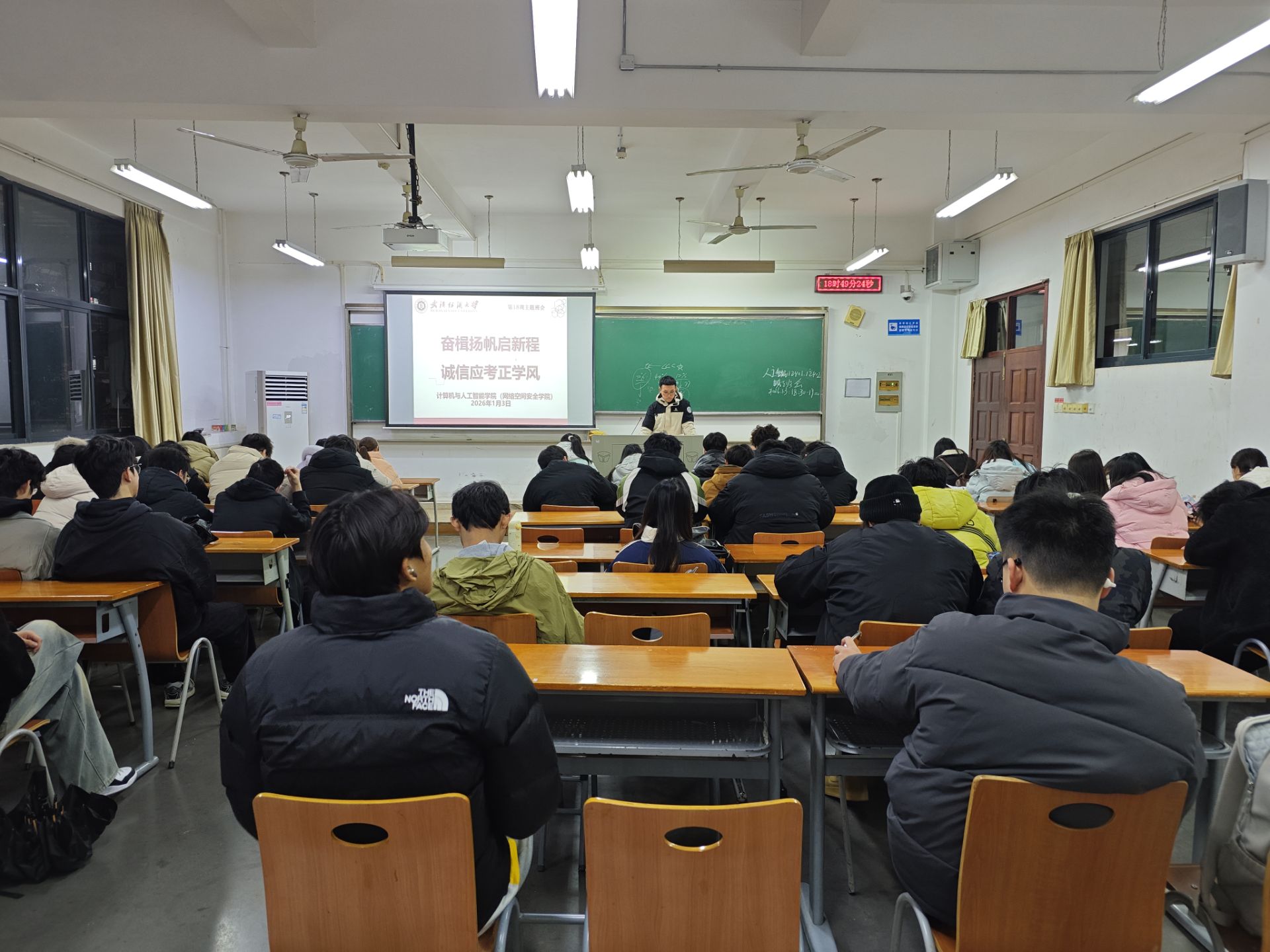 1月3日,为响应习近平主席在2026年新年贺词发出的号召,强化考风考纪建设,保障寒假安全,ok138cn太阳集团529各班级组织召开了以“奋楫扬帆启新程,诚信应考正学风”为主题的班会。此次班会强调,诚信是立身的根本,安全是假期的底线,希望同学们在期末以诚信应考展现优良学风,在寒假以安全自律守护自身成长。