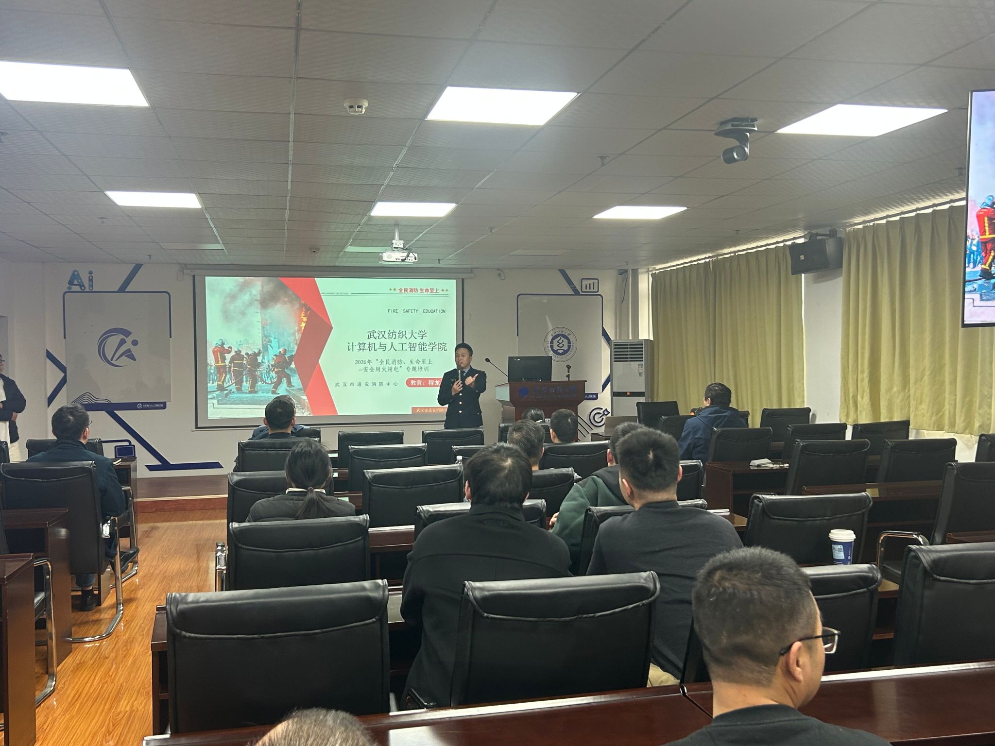 为切实强化全院师生的消防安全意识,提升火灾防控与应急处置能力,筑牢校园安全防线,1月16日,ok138cn太阳集团529特邀武汉市进安消防中心教官程龙,面向全院教师及研究生开展主题为“全民消防、生命至上——安全用火用电”的消防安全专题培训。