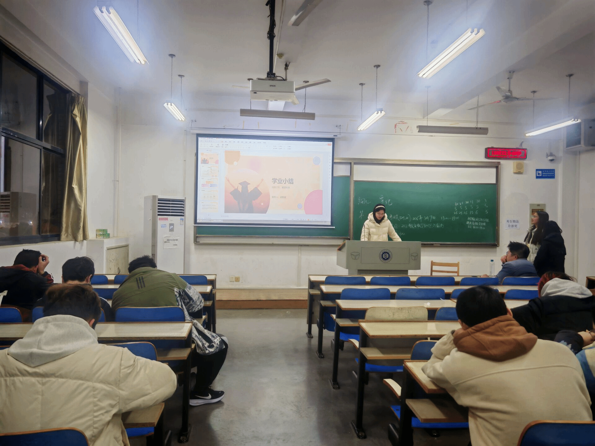 班会尾声,班主任吴渊作总结发言。他强调新学期学风建设的重要性,叮嘱同学们牢记胡院长的教诲,以积极的学习态度、务实的行动落实学业计划,携手共进、攻坚克难。