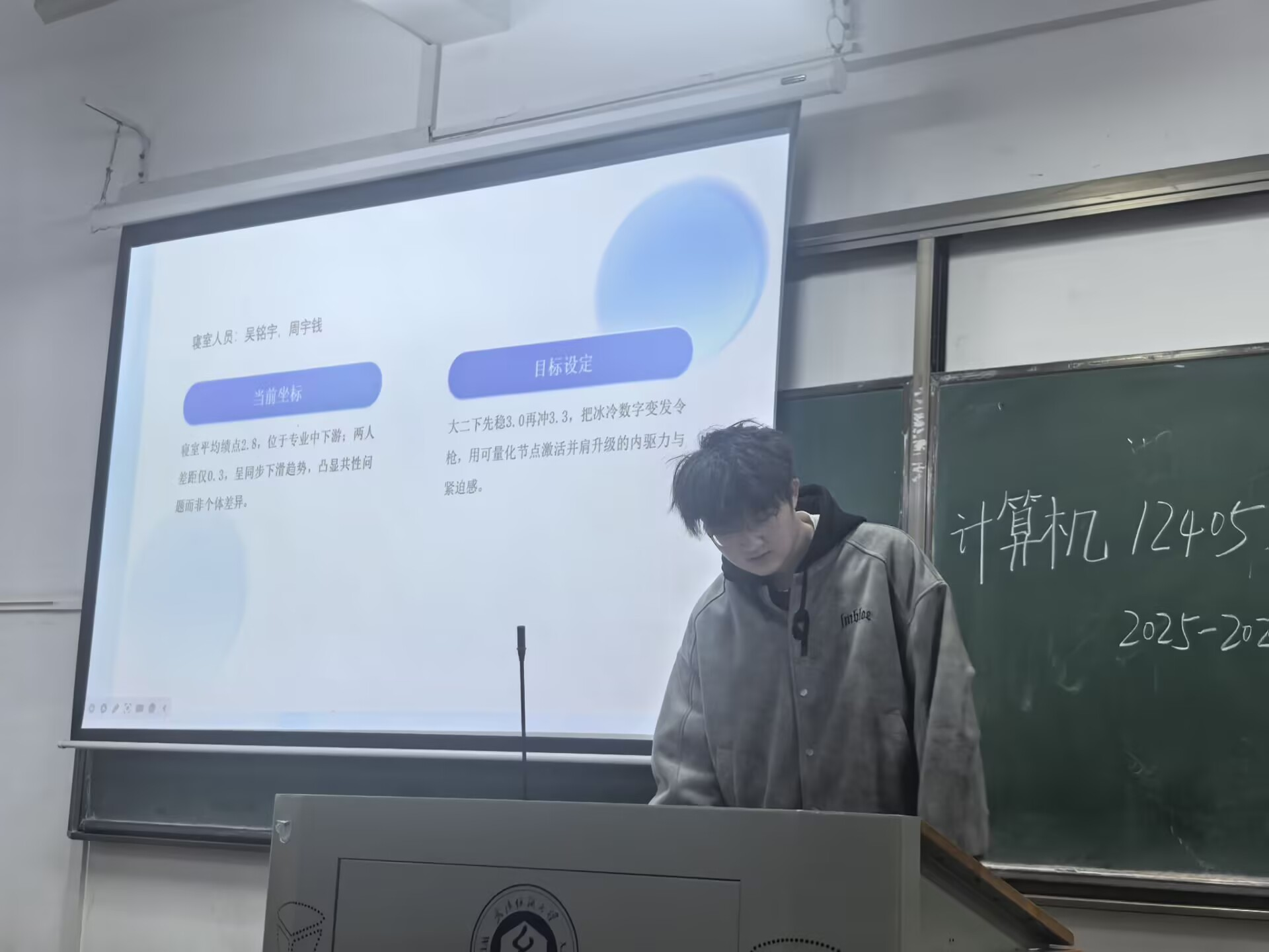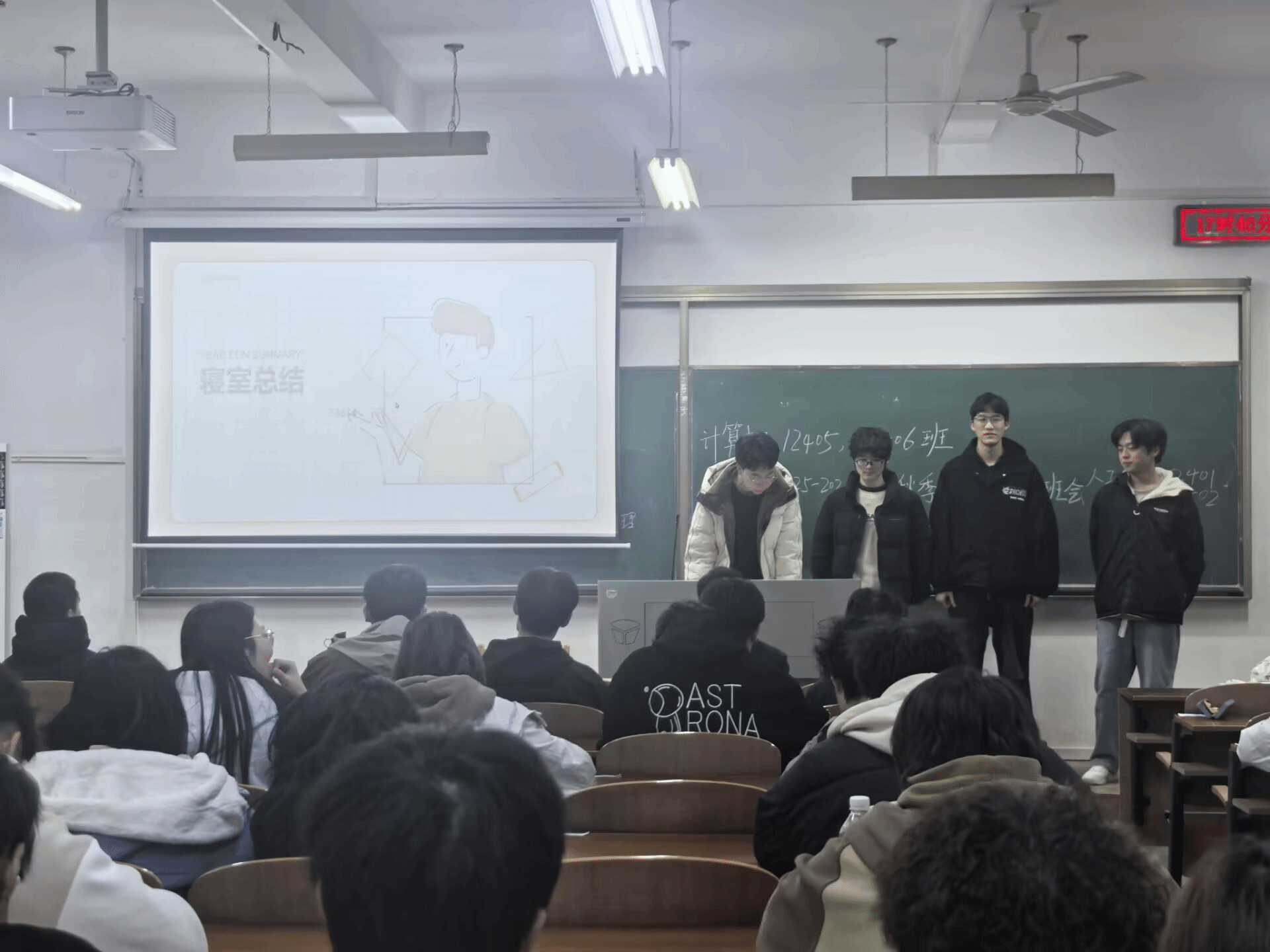 会议伊始,学习委员李炫明确本次总结会核心议程,复盘成长、剖析不足、规划提升,以务实交流推动班级整体协调发展。随后,各寝室代表依次登台,结合学期成长经历,从学习状态、生活管理、实践参与、改进方向等方面展开详细汇报。