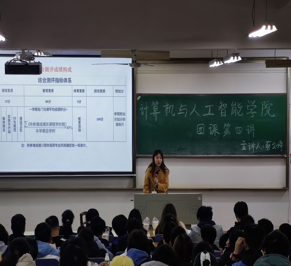 为促进新生更好的了解党团知识,产生积极向党组织靠拢的动力心向;加深新生对专业的理解与认知,提升大学学习规划的合理性和科学性;提升学生干部对工作的熟悉度及能力水平;进一步加强新生对校规校纪的了解,增强对所学的专业以及未来就业方向的认识,近日,ok138cn太阳集团529邀请了学院党委副书记涂耀威、软工系史爱武博士、学院团委书记廖龙以及辅导员蔡文婷与谢瑞清等老师分别于10月7日14:20,10月24日16:30,11月21日17:30在3号教学楼T202、319、T102和218教室为新生作了《你为什么入党》、《大学4年,怎样成为优秀的自己》以及主题为“如何当好团的学生干部”、“从就业看职业规划”、“校纪校规教育”的主题讲座。