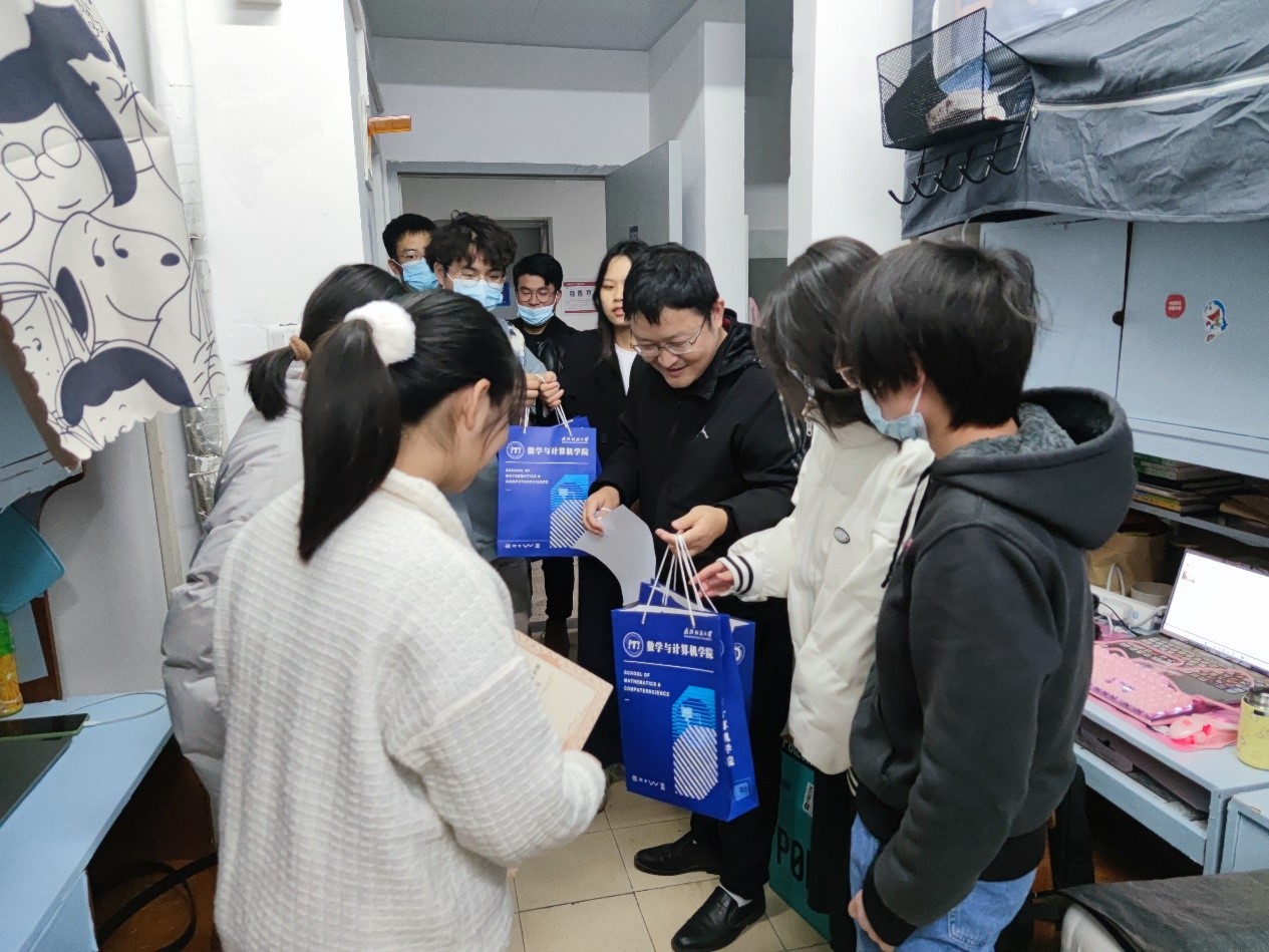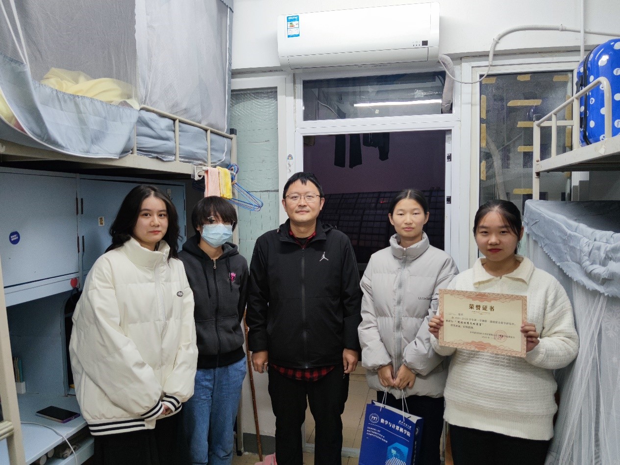 为表彰获奖宿舍成员,学院党委副书记涂耀威、团委书记廖龙老师联合院学生会成长服务部的同学们为获奖宿舍的同学们送去了荣誉证书和奖品,并同各宿舍同学合影留念。涂耀威对获奖同学的日常生活习惯及其宿舍环境表示了充分肯定,并与同学们进行了亲切的交流,积极了解日常寝室生活以及遇到的一些问题,同时他希望获奖的同学能够将良好的宿舍环境与特色文化继续保持与传承。