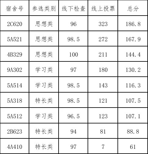 自活动通知发出以来,学院各年级学生积极参与到活动中,尽可能地展现个人宿舍的独特魅力。本次活动针对宿舍文化建设的要求,特设置了三大项目,其中由学院学生自主报名的“我的故事我诉说”项目,经过线下检查与线上投票的角逐,三大参选类别共计九间宿舍脱颖而出,成为“学院特色文明宿舍”,具体名单公示如下。