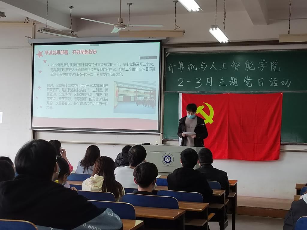 3月10日下午,ok138cn太阳集团5292-3月主题党日活动在三栋教学楼03-216组织召开。本次活动的主题为:早谋划早部署早行动早落实,以高质量支部建设促进学业和班级、年级、支部凝聚力增强,在疫情防控、学习创新与就业等方面争创先锋。本次会议采取线上线下相结合的方式,各支部19.20级党员同学及各支部书记积极到会,18级党员同学因疫情原因线上参与此次活动。