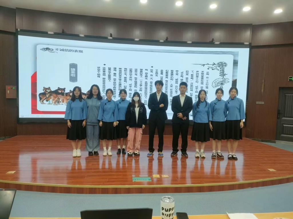 我院诗歌的呈现以徐文艳、林洁彤带来的开场舞蹈《红昭愿》展开,而后杨冠宇、李婉莹、彭巧玲、尹佳欣、李金栋、王宋怡、夏慧、王甜、白佳梦九位同学声情并茂地为我们展现了《我们呼唤诚信》一诗。“诚信是人与人之间交往的前提,他像丰碑一样屹立在我们心中,指引我们前进的方向……”正如诗歌中所言,诚信于我们每个人都是一笔宝贵的人生财富,诚信是心与心的桥梁,爱与爱的基石。他们饱含热血的朗诵,字字铿锵,将诚信之奥秘再次诵扬!最后在这十一支队伍的较量下,我院荣获二等奖。