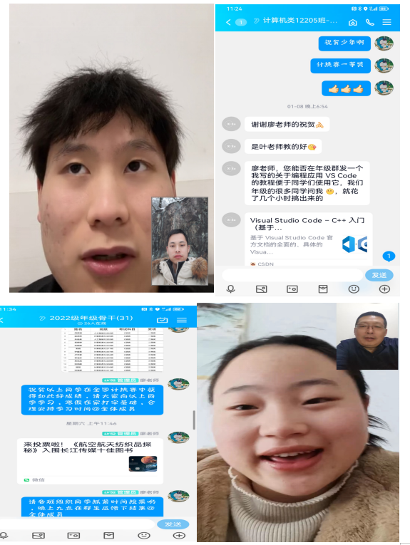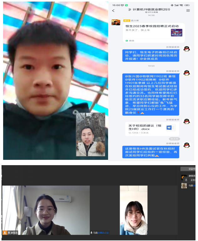 大一年级辅导员就学习学业、社会实践等方面进行了重点强调,告诫同学们处于大学的起始阶段,一定要做好大学生活学习规划、及早行动并持之以恒,为整个大学生涯迈出重要的一步。同时鼓励学生多参与社会实践,不断开拓认知、丰富经历。大二年级辅导员详细了解了学生居家学习情况,勉励学生在大学的关键阶段要抓住时机、奋力一搏,为后续的学业生涯打下坚实基础,也鼓励同学们要多多参与社会实践,主动奉献社会,自觉将个人价值和社会价值联系起来。大三年级辅导员详细了解了学生的健康情况、家庭情况,并对学生的学业和就业进行了前置教育,告诫学生要及早谋划,考研要提前制定复习计划,就业要及早积累经验,为毕业做好充足准备。大四年级辅导员就学生考研复试、春招再次进行了强调和建议,鼓励同学们寒假期间积极准备面试,为年后的研究生复试打下基础;就业的同学要在寒假期间不断修改简历、不断提高专业技能,抓住年后春招的黄金时机,解决就业问题。