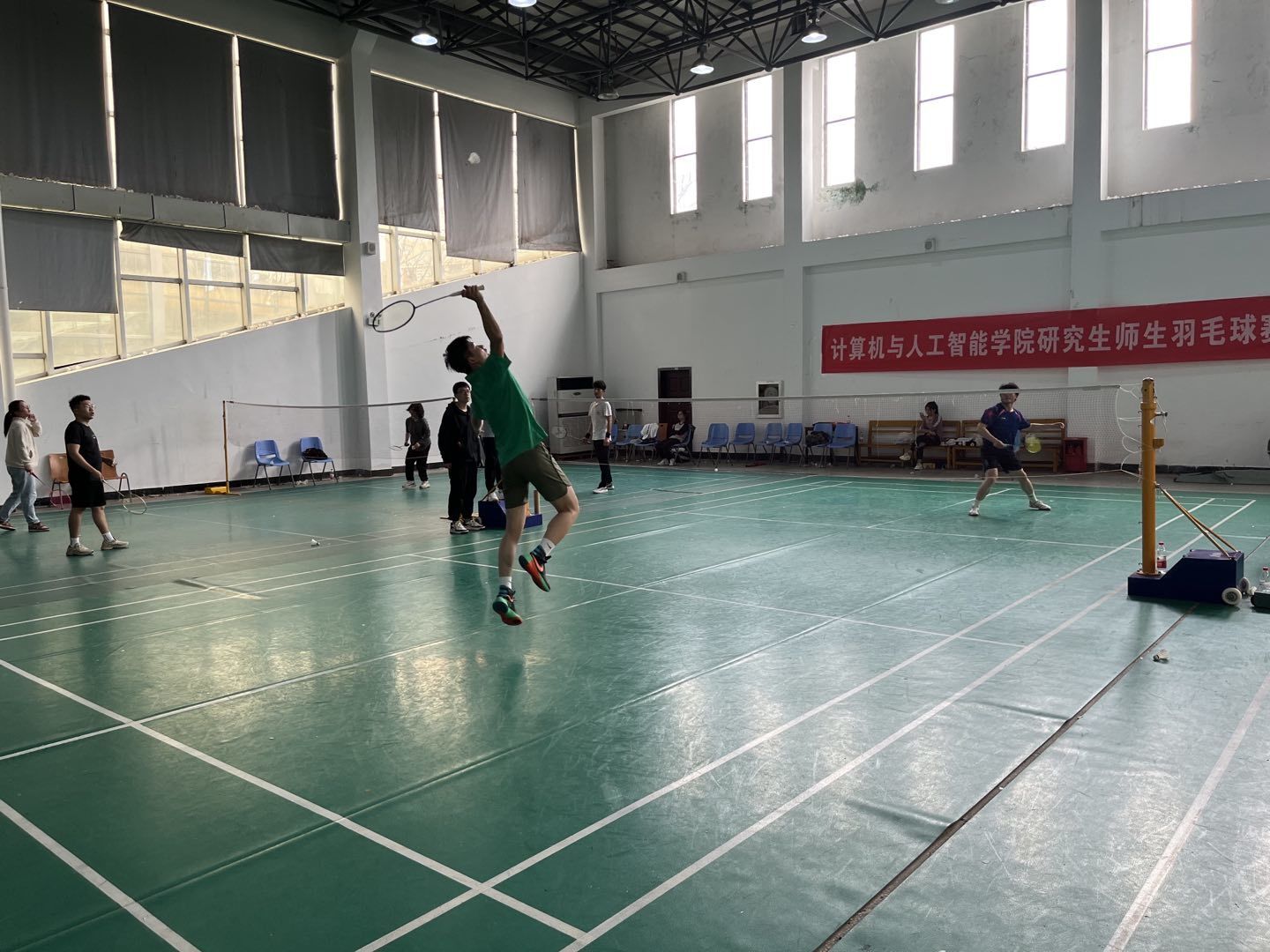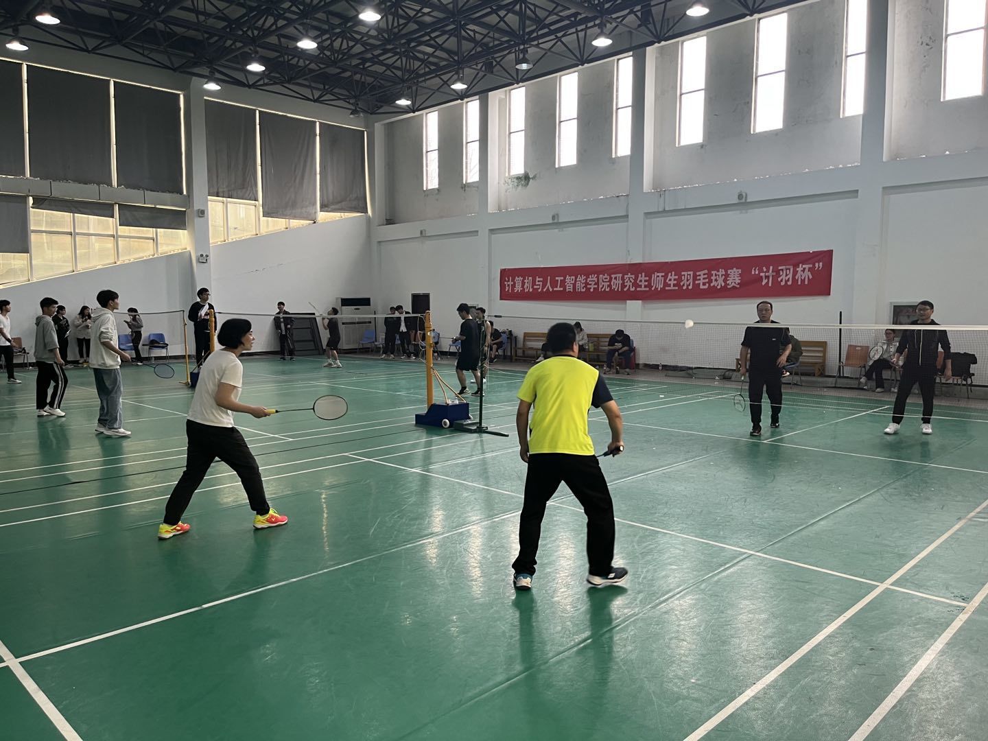 比赛设男子单打、女子单打、男子双打、以及混合双打等四个项目。参赛选手们在场上展现出了高超的球技和敏捷的身手,为我们展现了一场场酣畅淋漓的精彩对决。学生们在比赛中绽放出青春与活力,平时严肃认真的老师们也展现了活泼可爱的一面,现场观众情绪高涨,不时爆出阵阵掌声、欢呼声,气氛活跃。