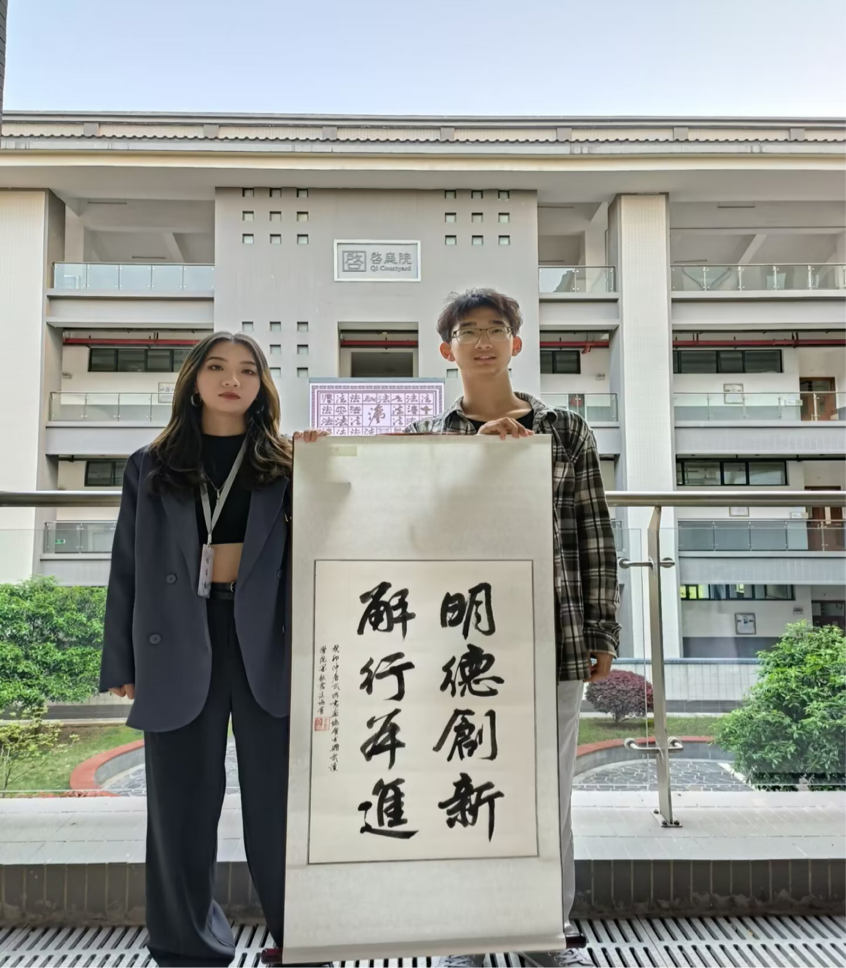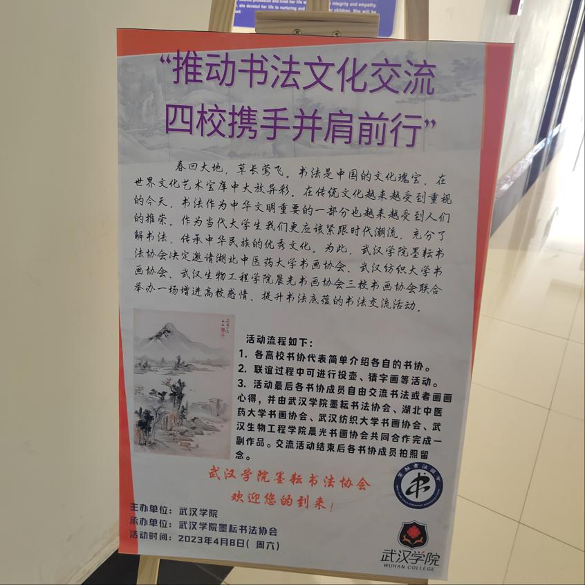 交流活动结束后我校书画协会为表感谢,赠字一幅予武汉学院墨耘书法协会。
