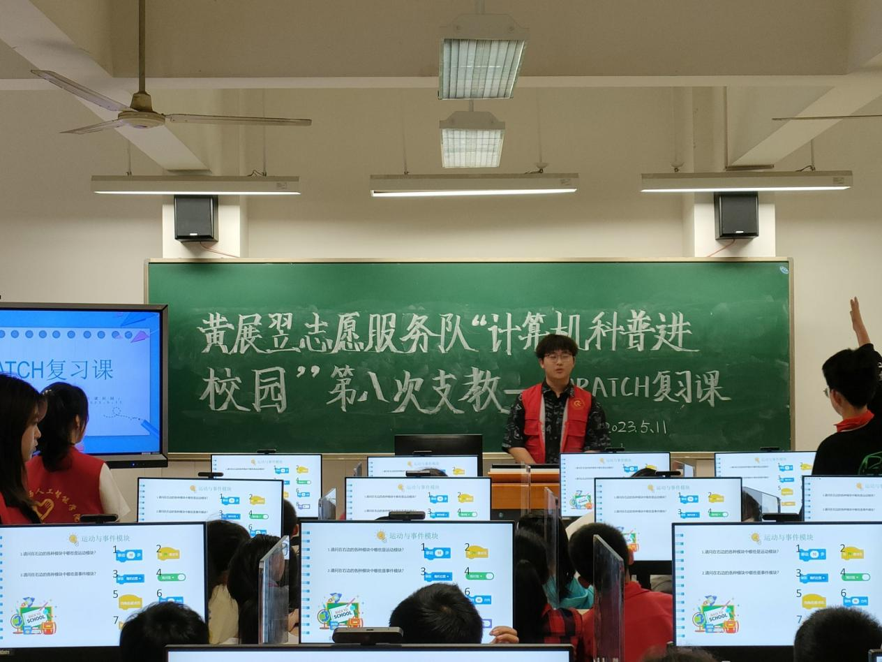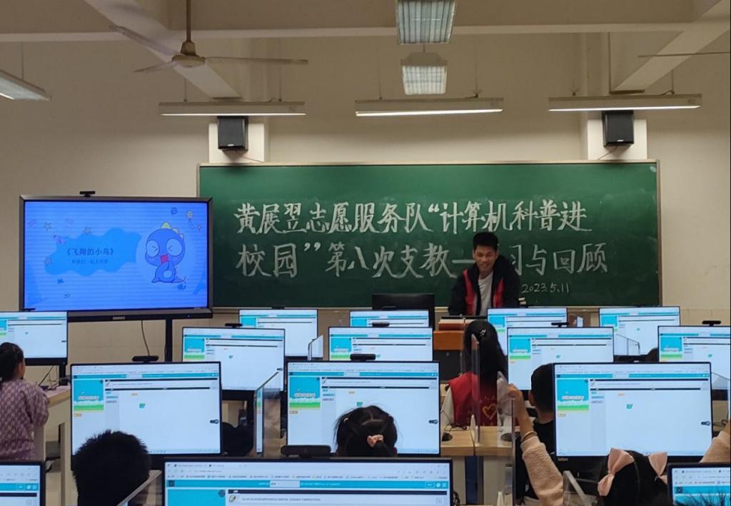 繁花似锦,绿荫如海,槐花香熏陶着五月的校园,ok138cn太阳集团黄展翌志愿服务队联合ok138cn太阳集团5291024工作室成员,于5月11日下午在武昌区石洞街学校开展第八次“计算机科普进校园”系列支教活动。