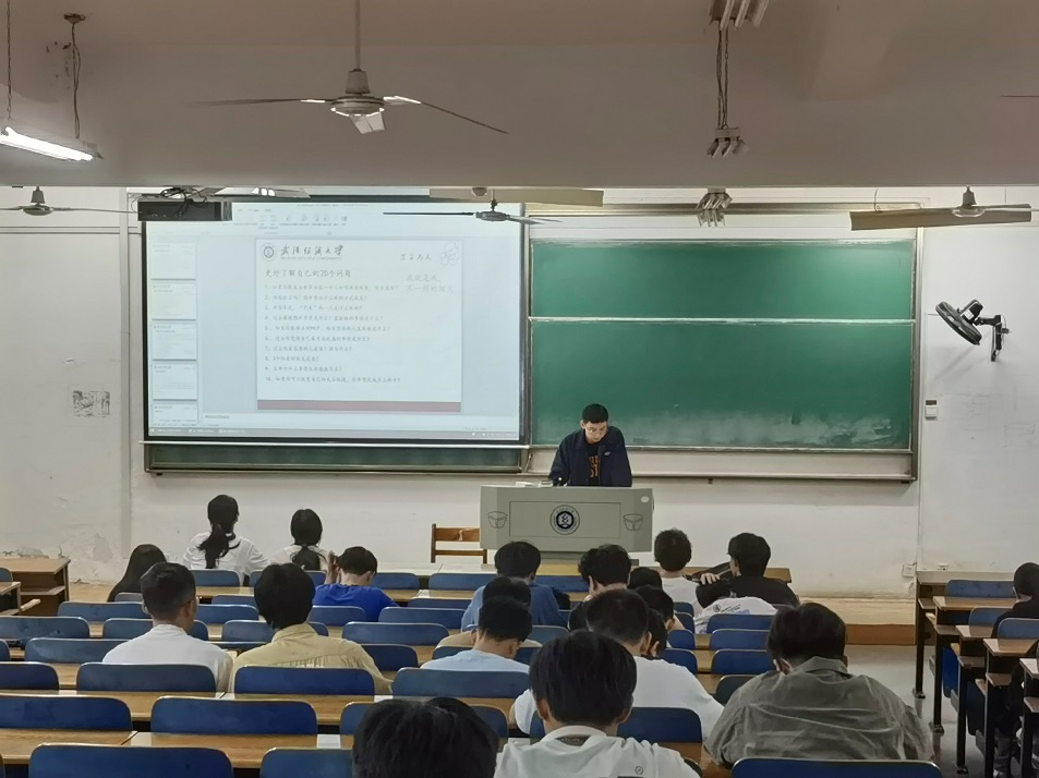 班会开始,全体辅导员进行点名,确认所带学生状态,,对未到学生进行联系确认。班会上,辅导员向同学们介绍了“5.25心理健康节”的由来,引导同学们善待自我,接纳他人,共同在心中创造一片光明的天地。辅导员通过班会进行知识讲解,帮助同学们学习心理健康知识、增强心理健康素质。辅导员强调,在面对心理压力时,进行一定程度的运动是减少压力、释放焦虑的最好办法之一,并借此鼓励同学们参加由本学院承办的“5.25心理健康趣味运动会”,在活动中缓解压力,收获友谊。