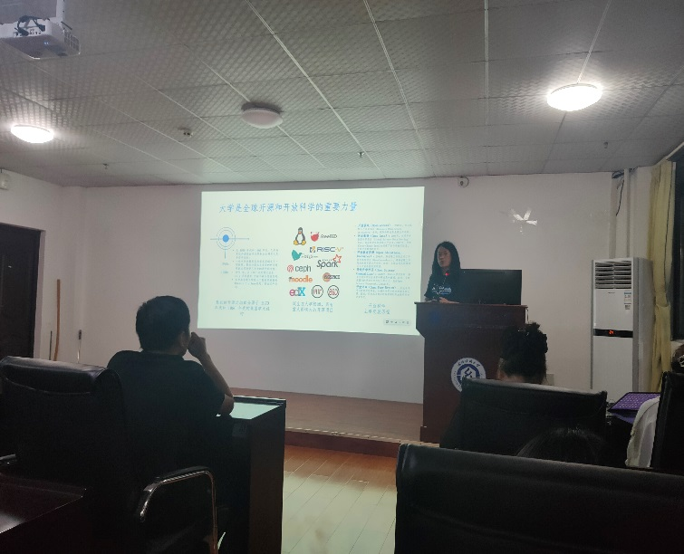随后郭皓从开放获取、开放数据、开放教育资源、开放科学社区、开放评审等方面向同学们介绍了开源运动的发展历程。郭皓强调开源是一种先进的协作生产模式,所体现的是数字优先思维方式和远程优先协作模式,是解决“创新-研发-生态-商业”协调问题的最匹配生产方式,通过高效的协作以实现客户价值创造前移。