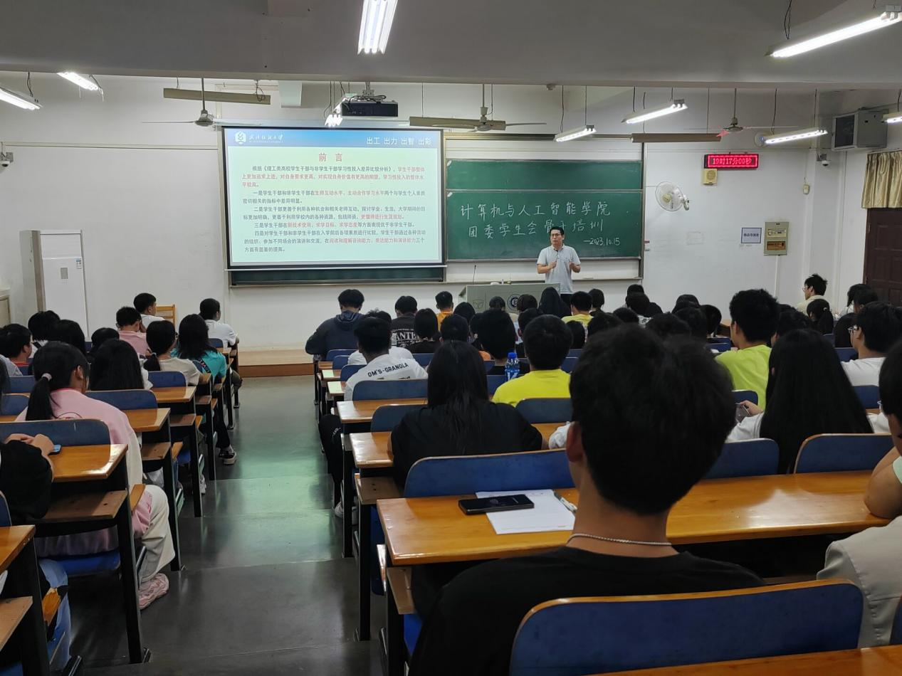 向涛在讲授中对比了学生干部与非学生干部的区别与差距,点明学生干部整体上更加追求上进,对自身要求更高,对实现自身价值有更高期望,学习性投入的整体水平更高。并从以下四个方面详细展开:一是学生干部和非学生干部在师生互动水平、主动合作学习水平两个与学生个人素质密切相关的指标中差异明显。二是学生干部大学期间的目标更加明确,更善于利用学校内的各种资源提升自己。三是学生干部在新技术使用、求学目标、求学态度等方面表现优于非学生干部。四是对学生干部和非学生干部在入学前后各项素质进行比较,学生干部通过各种活动的组织、参加不同场合的演讲和交流,在理解能力、表达能力和演讲能力三个方面有显著的提高。