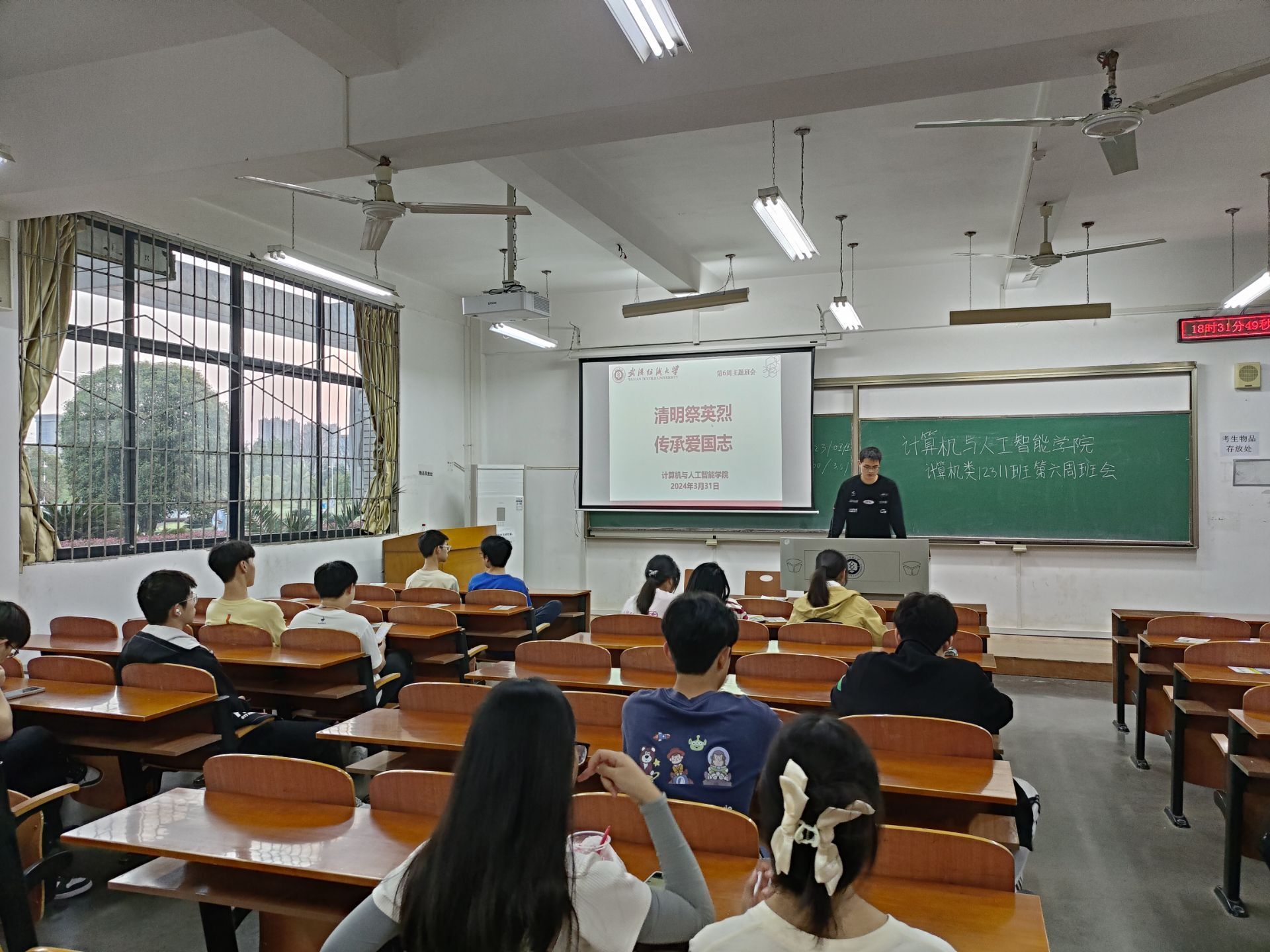 此外,班主任还对同学们进行了清明假期安全教育,提醒有出行安排的同学履行好请销假手续,做好充分的外出准备,对自己的安全负责。清明节假期期间要注意交通、用火、用电安全,特别是要谨防诈骗。最后,班主任强调,同学们要抓紧专业学习,及时明确自己未来的发展目标,好好利用大学四年的时光。