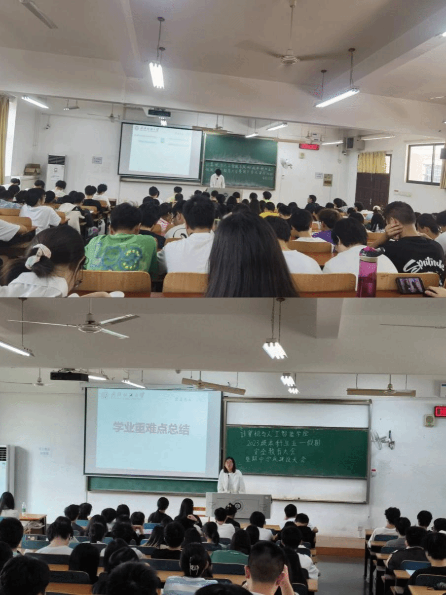 最后,向涛对本次会议做了总结。他表示“每个人在不同阶段都不要停,要学会发展。”同时,希望计智学子能度过安全,充实且快乐的假期,以积极向上的心态和脚踏实地的作风,营造良好的学习环境,共同成长进步!此次五一假期安全教育大会暨期中学风建设大会,为2023级本科生的学习发展指明了方向,激发了同学们对学习的热情。