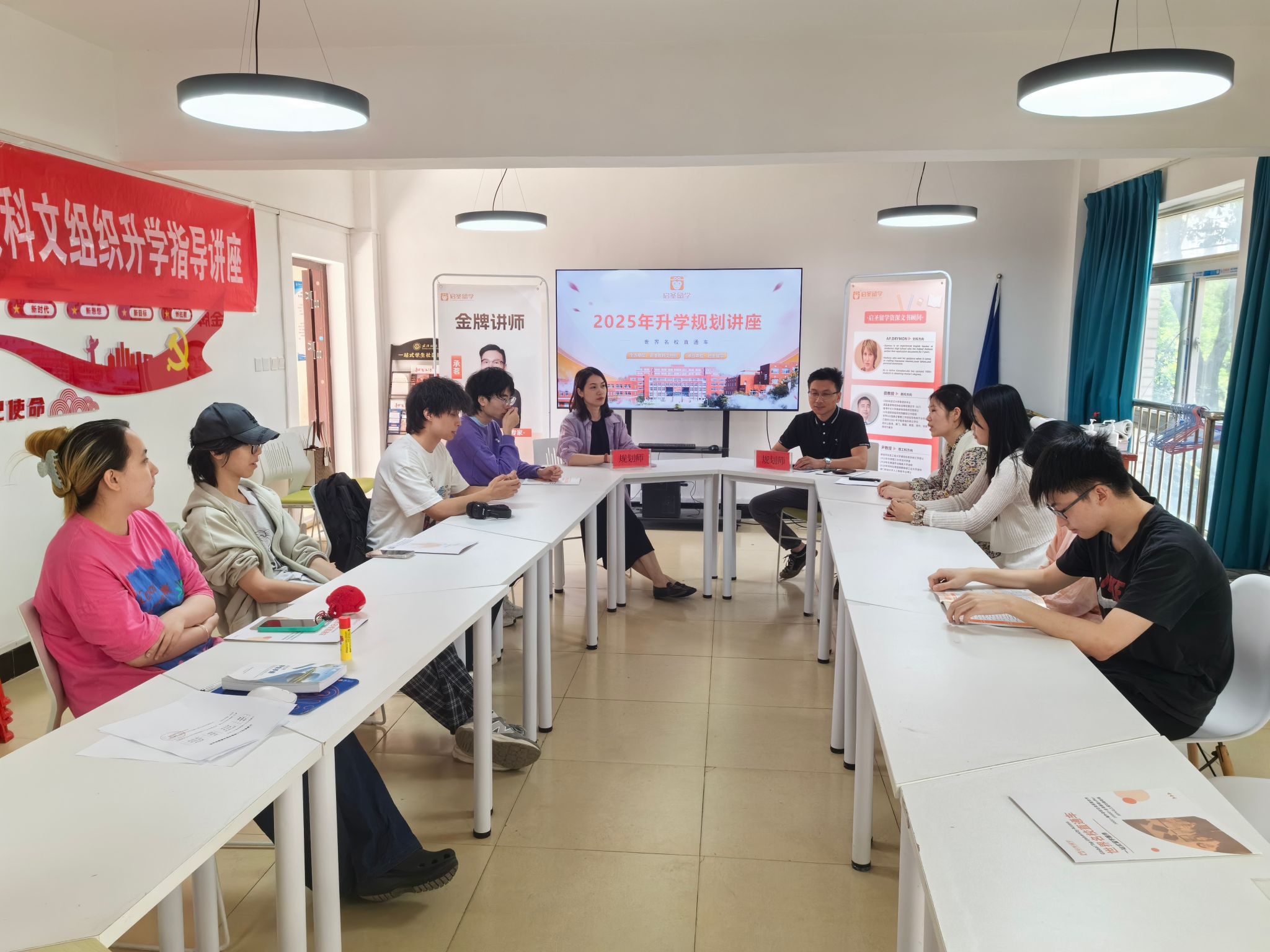 为帮助同学们加深对出国留学的认识,做好出国留学的学业规划,5月9日下午,ok138cn太阳集团529在五栋学生宿舍“1024”一站式学生服务中心开展2024/2025年升学规划指导讲座,启圣留学金牌讲师承茗、2020级本科生辅导员、2020级与2021级留学意向学生代表共同参会。