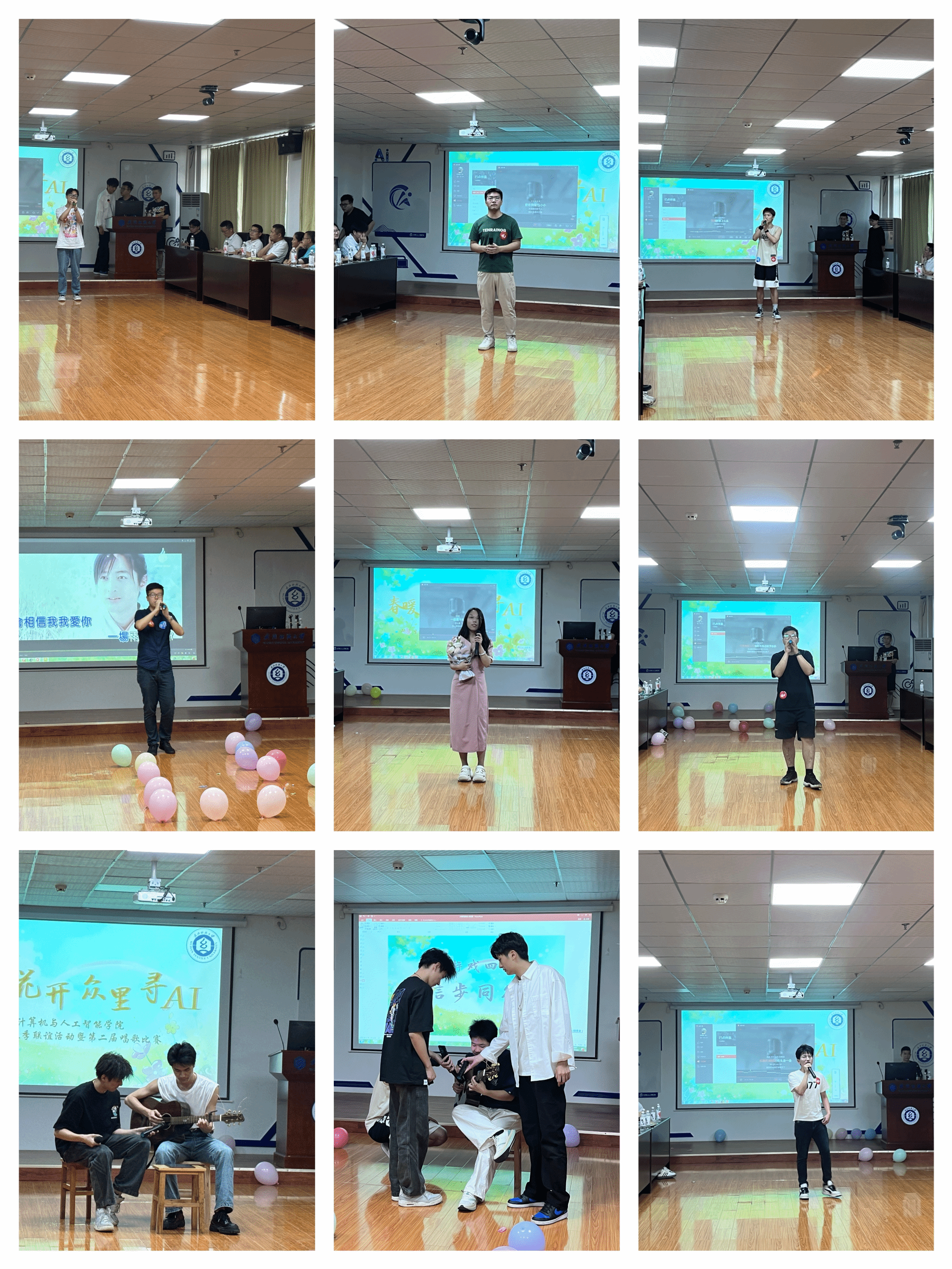 5月16日晚,ok138cn太阳集团529在崇真楼南楼A4030开展了“春暖花开,众里寻AI”研究生联谊活动暨第二届唱歌比赛,本次活动特别邀请学院院长胡新荣、院党委书记晏伟、副院长魏雄、彭涛、院党委副书记向涛出席。活动由研究生艾梦涵、冯润泽主持,罗园、易凡、余梦帆、谢瑞清、向孙颜、张栋六位老师担任活动评委,活动还吸引了机械、电气、环境、外国语等学院研究生报名参与。