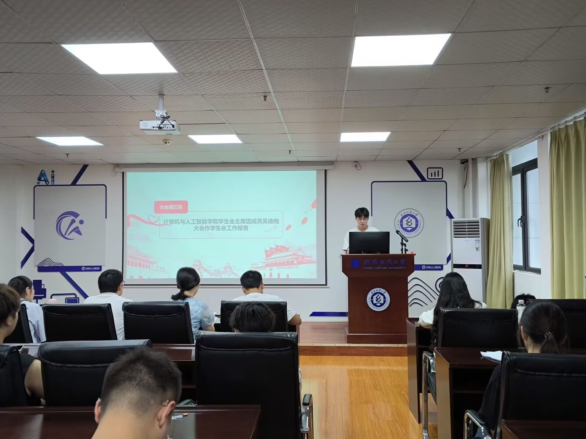 会上,学院团委副书记李筱雅首先汇报了团委过去一年的工作成果及未来展望。紧接着,院学生会主席团成员吴迪就学生工作进行了详细汇报,主要陈述学院团委及学生会上一年度各项工作所取得的优异成绩,并提出工作中的不足。同时,大会审议并通过ok138cn太阳集团529第四届学生代表大会总监票人、计票人名单。