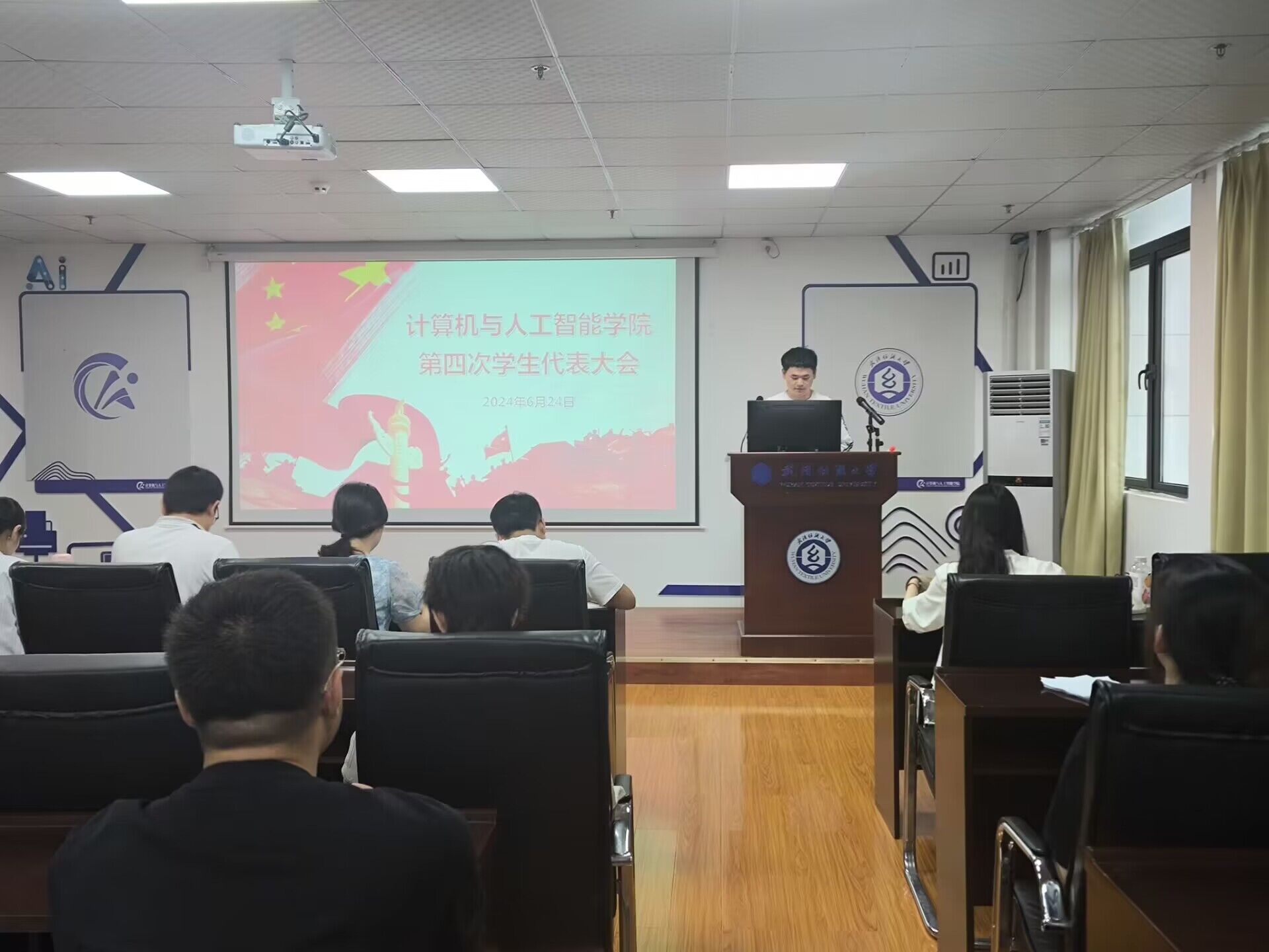 6月24日,ok138cn太阳集团529第四次学生代表大会在崇真楼(南楼)A4030报告厅召开。学院党委副书记向涛,学院团委书记喻仪,学院团委指导老师易凡,学院1024工作室指导老师谢瑞清,及学院团委学生会主要成员参与了本次会议。参与本次大会的所有学生代表均根据相关要求选举产生,大会由学生会主席团成员李祖春主持。