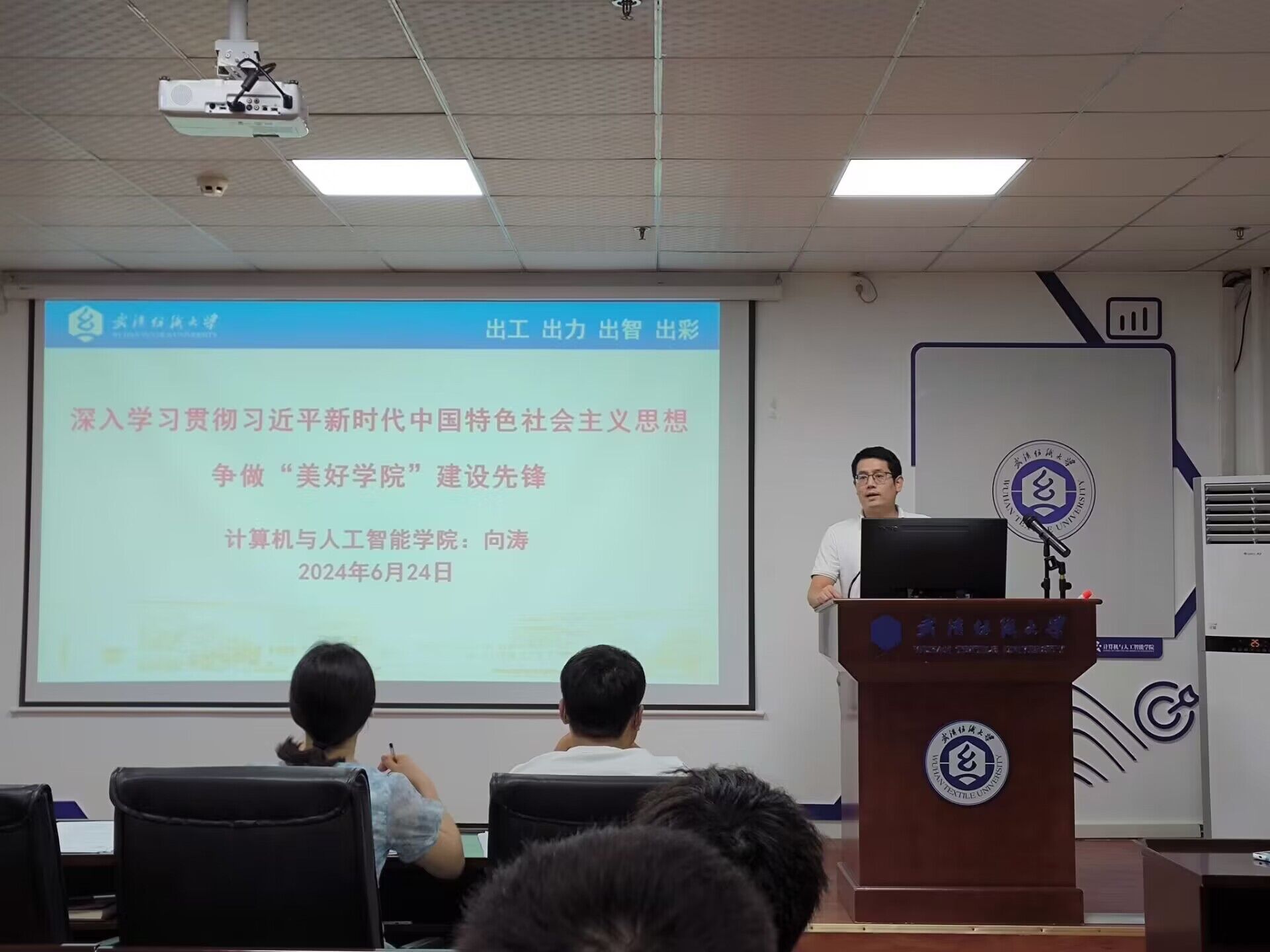 最后,向涛总结发言。他首先对每位候选人的竞选内容进行了逐一梳理,对他们的决心和承诺表示了充分的认可,并给予了热情的鼓励。他肯定了候选人展现出的对工作的热爱和对责任的承担,同时也强调了作为学生干部需要具备的素质和能力,提出了四点要求,一、加强学习、提高政治站位,要求大家不断提高自己的政治站位,增强对党的理论和路线方针政策的理解和掌握;二、聚焦发展、勇于担当作为,鼓励学生干部积极投身到学院的发展和建设中去,以实际行动践行自己的责任和使命;三、务实奉献、发扬优良作风,要求学生干部脚踏实地,做到言行一致,以身作则,树立良好的形象;四、团结和谐、保持步调一致。希望所有学生干部能够严格遵守承诺并付诸实践,形成工作合力,共同推动学院的发展。